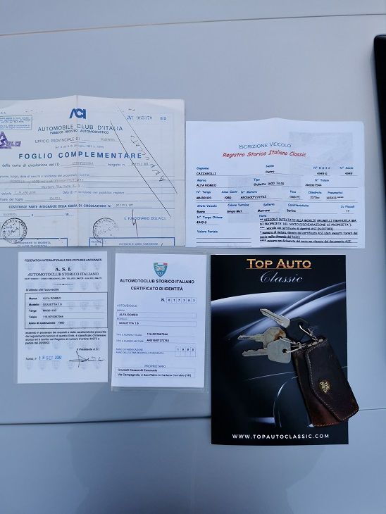 TOP AUTO CLASSIC presenta : Fantastico esemplare di ALFA ROMEO GIULIETTA 1.6 (116) anno 1980 , PRIMA SERIE frecce davanti, argento met. , con solo km.33000 , CERTIFICATO ASI TARGA ORO , ISCRITTA REGISTRO STORICO ALFA ROMEO , auto spettacolare , pari al nuovo , interni velluto MARRON BICOLOR perfetti , gomme nuove , tagliandata , auto per veri intenditori e collezzionisti.