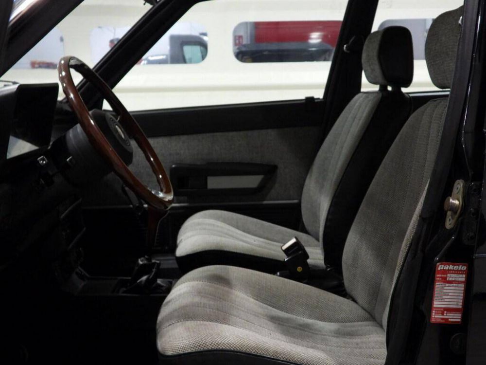 Seats and panels in gray fabric and Alfa Sky Black Tex, front and rear seat belts, steering wheel and gear knob in imitation wood, Blaupunkt Nurnberg AM/FM car radio with antenna on the windshield, transparent front side indicators, rectangular yellow fog lights , Iron rims with chromed Alfa Romeo cap with 185/70 R13 tyres, Electrically adjustable external Alfa Romeo driver's side mirror, Rear fog light