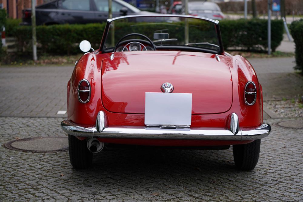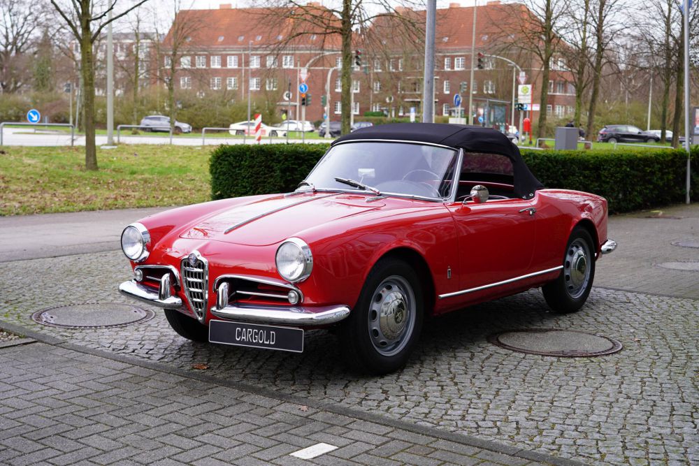 Die Alfa Romeo Giulietta Spider wurde gebaut von 1955 bis 1962 mit zunächst 1300 ccm und 80 PS, Typenbezeichnung 750 D.