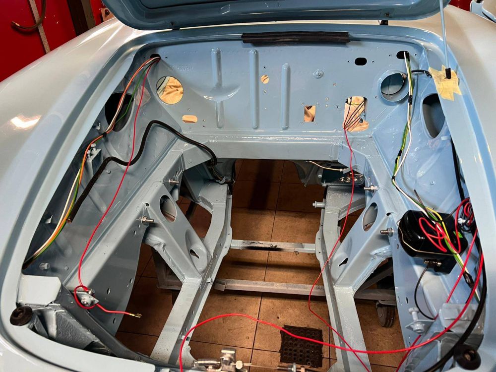 Wiring loom and trim fitted. Axles overhauled. Engine and gearbox ready to go in. Car will be finished in about two moths.