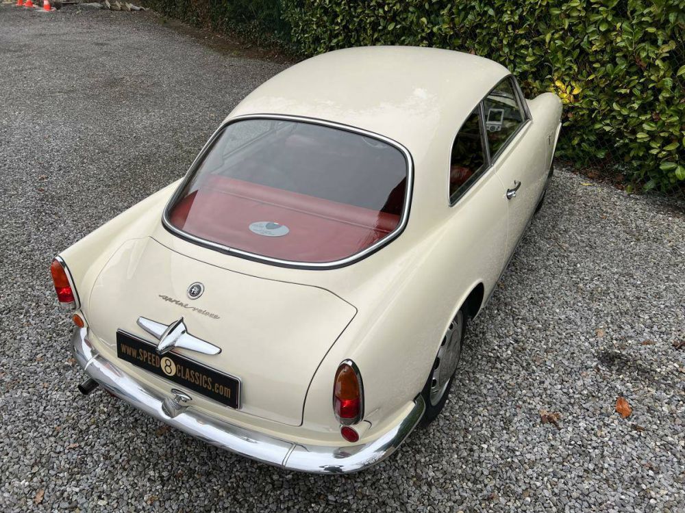 1959 Alfa-Romeo Giulietta Sprint Veloce in very good condition! Finished in it's original Bianco Ambra with red leather seats (luxury comfort option),  interior completely original with very nice patina! 04/1959 Italian delivered car with all history from new. In 2004 imported to Luxembourg and prepared for regularity rallying by specialist Toni Rotondi with 125hp engine, 5-speed gearbox, limited slip diff., tripmaster...From 2005-2015 participated in many regularity rallyes trough Europe. Recently completely serviced with new Michelin tyres...ready to enjoy!