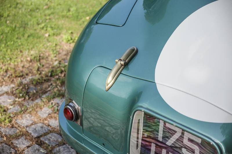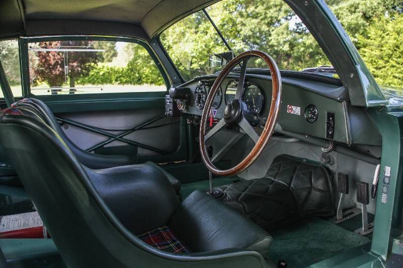 1952 Aston Martin DB2 Le Mans Lightweight finished in Aston Racing green with beautiful original dark green leather and tartan bucket seats. This car is very well known in Aston circles as it is extremely close in specification to the Aston Martin Team cars that competed at Le Mans in the 1950’s. It has been extensively raced in recent years at The Le Mans Classic and The Royal Automobile Woodcote Trophy Race and is in the process of being made race ready for the next owner.  It is fitted with the correct matching numbers 2600cc engine with a steel crankshaft and rods, breathing through correct triple Webber carburettors. It was carefully rebuilt about 20 years ago with alloy bulkhead and alloy inner wings giving a considerable weight saving and has very recently been the subject of a complete repaint with replacement window frames and new perspex to all of the relevant windows.  It has the benefit of HTP/FIA papers through to the end of 2026, making it eligible for numerous high profile events. This is an extremely rare opportunity to acquire a very rare and desirable 50’s race car that is already accepted by the organisers of numerous prestigious events. It is of course also eligible for the Mille Miglia. Please enquire