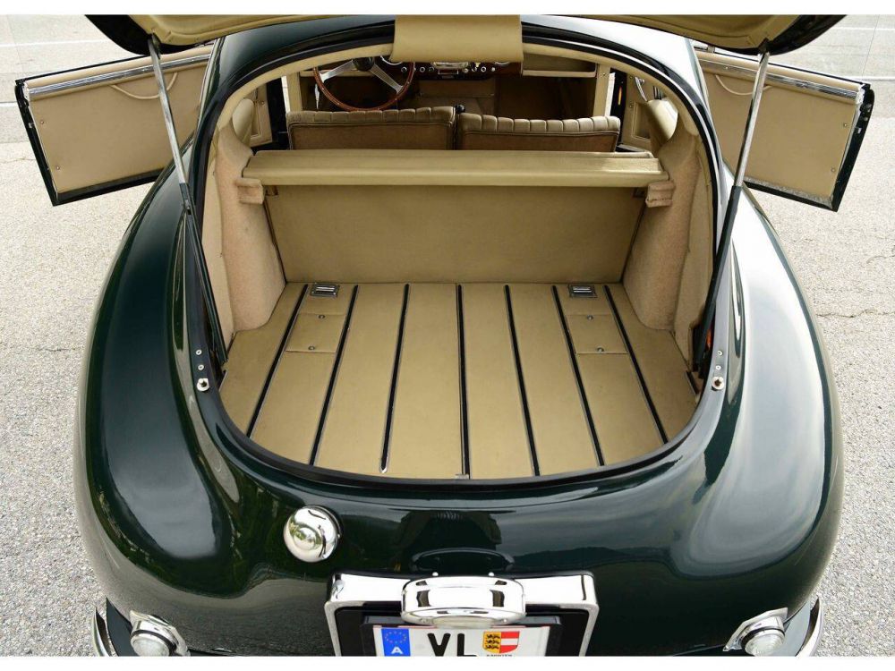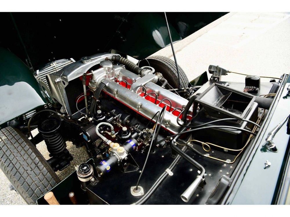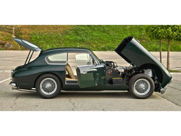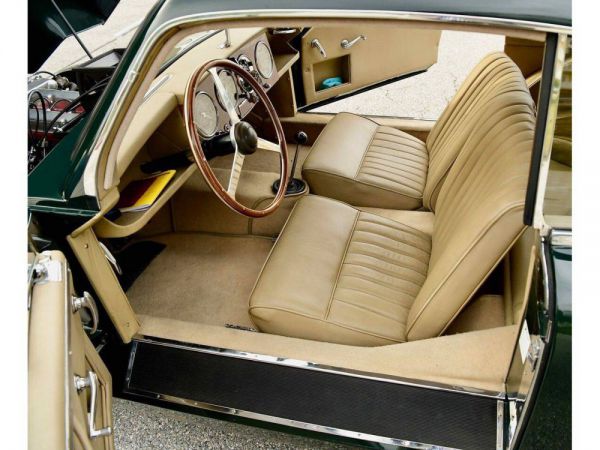 The Aston Martin DB2 had been well received and sold throughout the world, but the market in this price range for a car with two seats (and limited luggage space) was restricted. A 1952 DB2 chassis was modified by removing the cross-brace above the rear axle to enable two occasional rear seats to be accommodated.The roof line was changed to give more headroom towards the back and the small rear window was replaced by a larger window in an opening tail gate. a the same time the fuel tank was reduced from 19 to 17 gallons, allowing it to be set lower and the spare wheel was housed in a hinged carrier below the fuel tank.These modifications considerably improved the luggage space, which can be substantially further increased by folding down the back of the rear seat. The comment, attributed to the Bentley D.C, that the car was then fastest shooting-brake in the world was almost justified at the time when three door cars were a rarity.The Aston Martin DB2/4 was shown at the London Motor Show in 1953, both saloon and drop-head versions being available. Further improvements in the desgin of the body included a different-shape for the rear lights, headlamps set higher in the bonnet, improved bumpers (which could not be absorb a bump without damaging the body), with over riders and a one piece window-screen. This stunning 1955 example of a rare left hand drive car was totally restored and well documented in 2009, with a number of positive up-grades to improves to what is a fine car already. With the 3 litre engine makes it a prime candidate for world rallies and tour, eligible for the Mille Miglia. Supplied new to F W Meyer by Inskip USA with the Deep Carriage Green exterior and the Beige leather interior as it still is today. All matching numbers with the VBJ6 three litre engine.