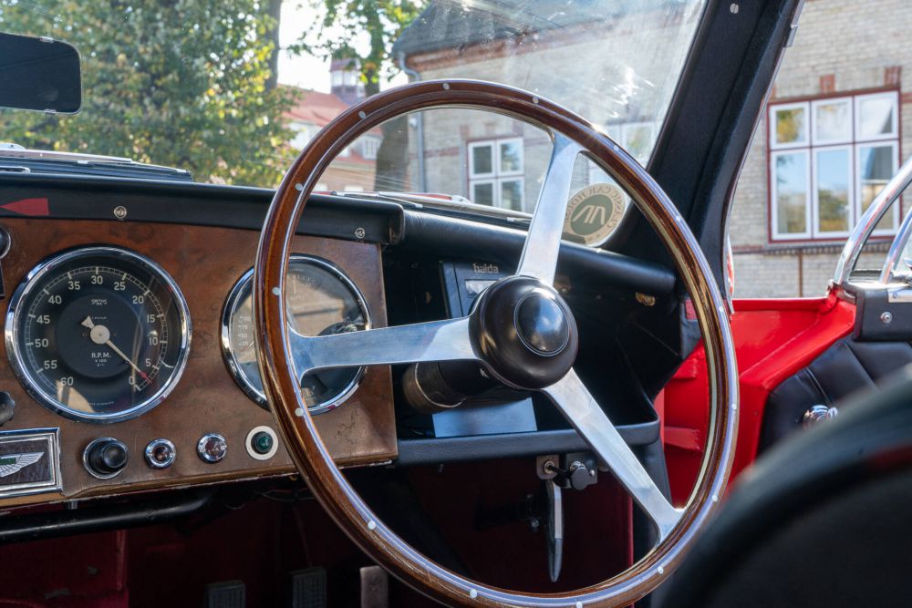 This 3.0-litre DB 2/4 Mk I, chassis number 1046, was registered new in the UK in October 1955, making it one of the very last Mk I examples. Only 565 cars were made before the introduction of the Mk II which was presented the very same month. The car spent time in America before returning to the UK in 1989, and reclaiming its original registration RYK 134. It was subsequently fully restored, both cosmetically and mechanically, and has been meticulously maintained, as evidenced by numerous invoices and documents on file. The DB 2/4s engine was rebuilt in 1999 by Chestnut Classics Ltd and converted to unleaded specification subsequently. In 2009 the DB 2/4 was brought to Denmark by a Danish enthusiast, who had it registered under its current registration number A 9515. The original number plates are included in the sale.