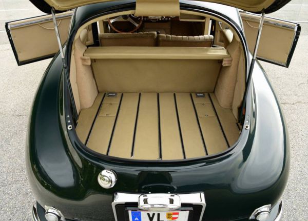 1954 Aston Martin DB2/4 Left Hand Drive Manual Coupe Registration: VL86A (Austrian) 435UYL (UK) Chassis Number: LML/733 Engine Number: VB6J/299 This stunning left hand drive DB2/4 was subject to a meticulous complete restoration in 2009. Every aspect of the car was removed and has been re finished to the highest of standards. It forms part of a prominent collection of high end perfect cars we have been tasked to sell in Austria where it may be viewed by prior appointment. The well-documented restoration file show the complete body shell being removed and every aspect of the chassis being brought back to the condition it left the factory in. The exterior has been finished in the original colour scheme of Deep Carriage Green and Beige interior. If you do not fall in love with the looks of this DB2/4 then simply turn the key and the roar of the beautifully W.O. Bentley designed straight 6 will win you over immediately. More recently the well-known and accredited Century Classics have maintained this DB2/4. With as view of entering the Mille Miglia they were given the task of checking and fixing every mechanical aspect of the car, this included: Cylinder head overhaul with fitment of the larger MK3 valves. Complete steering overhaul, including an uprated steering box. Complete brake overhaul with re-lined shoes. New wheel cylinder and re-built master cylinder. All new wheel bearings. Gearbox rebuild including new bearings, oil seals and clutch. Stronger DB4 style wheels fitted with new tyres. Renew Fuel pipes. Complete engine check including sump removal and big end bearings checked. All of the work carried out by Century Classics has made this a potentially Mille Miglia eligible and has an FIVA ID card, which is absolutely necessary for 1000 Miglia S.r.l. entry. Due the extensive maintenance work this DB2/4 must be one of the finest driving Aston’s on the road, starting first time, every time, the driving experience truly is sublime. The Aston Martin DB2/4 was launched from Feltham in October 1953 and was offered as a sporting 2+2 hatchback or an open Drophead Coupé. Although similar to the DB2 it replaced, changes included a smaller fuel tank, rear suspension upgrade, wraparound windscreen, larger bumpers, and repositioned headlights. A number of special bodied cars were also produced by Italian coachbuilders Carrozzeria Allemano, Bertone, and Vignale who were commissioned at special request by private clients. David Brown had purchased the Lagonda company a few years earlier, primarily to obtain the W.O.Bentley designed, double overhead camshaft straight six, which he wanted as a replacement for the aging Claude Hill four cylinder unit. He knew success in motorsport would benefit sales, and used the 2.6-litre, six-cylinder unit to power the works DB2s which were campaigned at Le Mans and across Europe throughout the early 1950s. The DB2/4 engine (VB6J) was initially tuned to 125bhp, propelling the car to 120mph and 0-60mph in 11.2 seconds. However, in the summer of 1954, the capacity was increased from 2,580cc to 2,992cc, which raised power to 140bhp at 5,000rpm and reduced the 0-60mph time to 10 seconds dead.