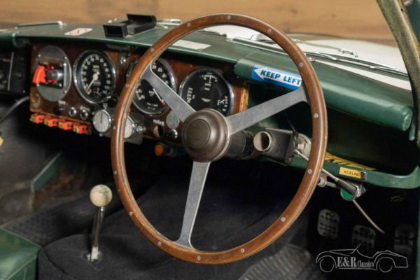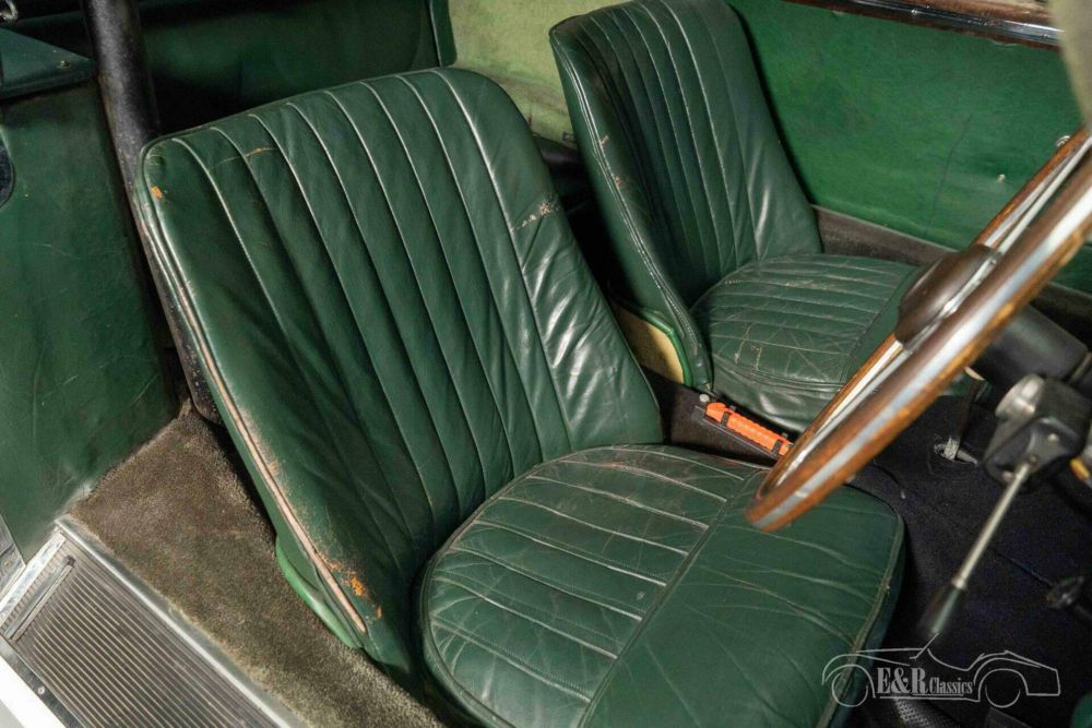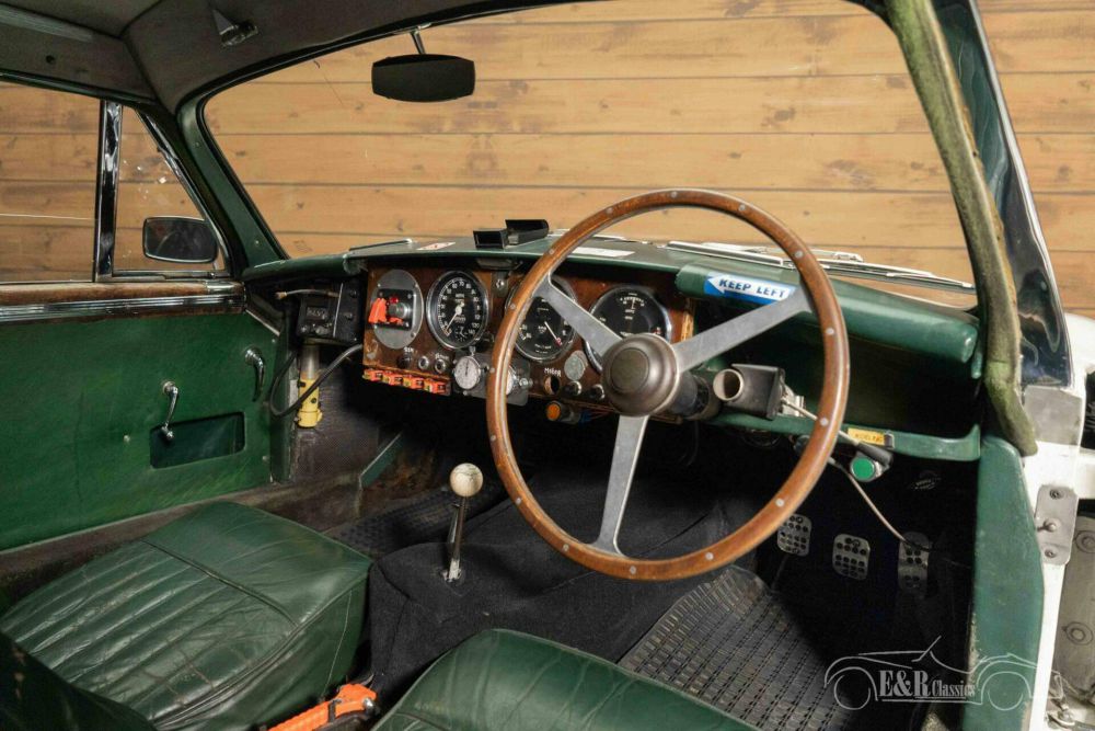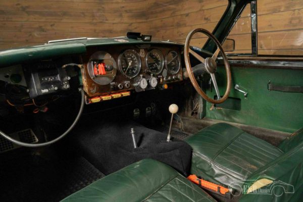 True Aston Martin connoisseurs will immediately see that this car is anything but a standard DB2/4. This classic was built to order in collaboration with bodybuilder Tickford, a company that often built custom bodies for Aston Martin. The additional headlights give this already beautiful appearance a unique look and make it a real eye-catcher. The Aston Martin has an Old English White paint and has racing stripes and other stickers that completely match the rally look. This stickers can of course be removed. The interior is equipped with dark green leather upholstery. There is also a set of rally seats available.