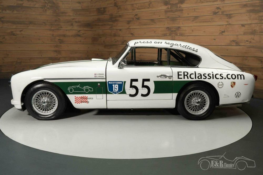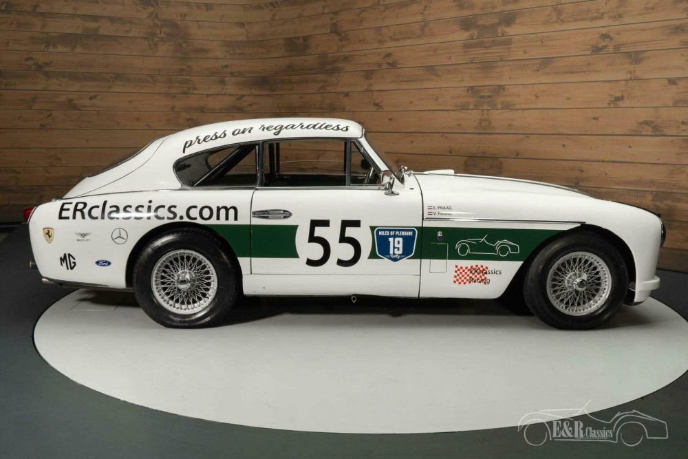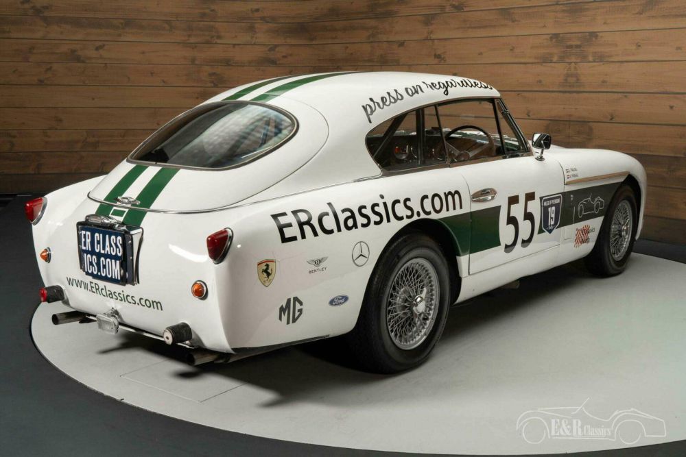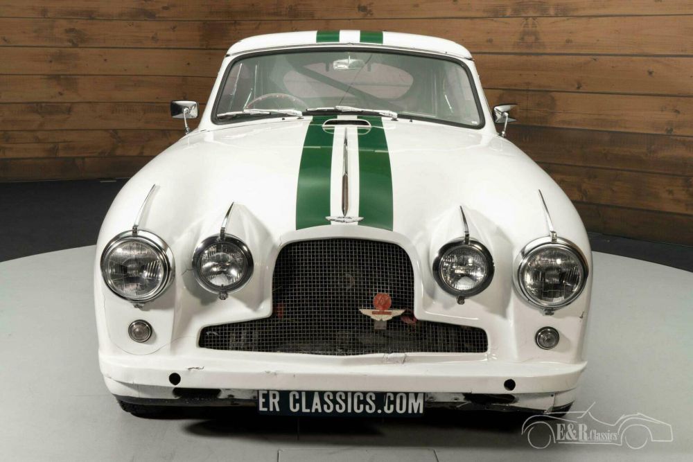 Echte Aston Martin kenners zien direct dat deze auto allesbehalve een standaard DB2/4 is. Deze klassieker is op bestelling gebouwd in samenwerking met carrosseriebouwer Tickford, een firma die vaker custom body’s bouwde voor Aston Martin. De extra koplampen geven deze toch al prachtige verschijning een unieke look en maken er een echte eyecatcher van. De Aston Martin is uitgevoerd in een Old English White lakwerk en heeft racing stripes en andere bestickering die helemaal past bij de rally uitstraling. Uiteraard is deze bestickering te verwijderen. Het interieur is uitgerust met donkergroene lederen bekleding. Er is ook een set rallystoelen aanwezig.