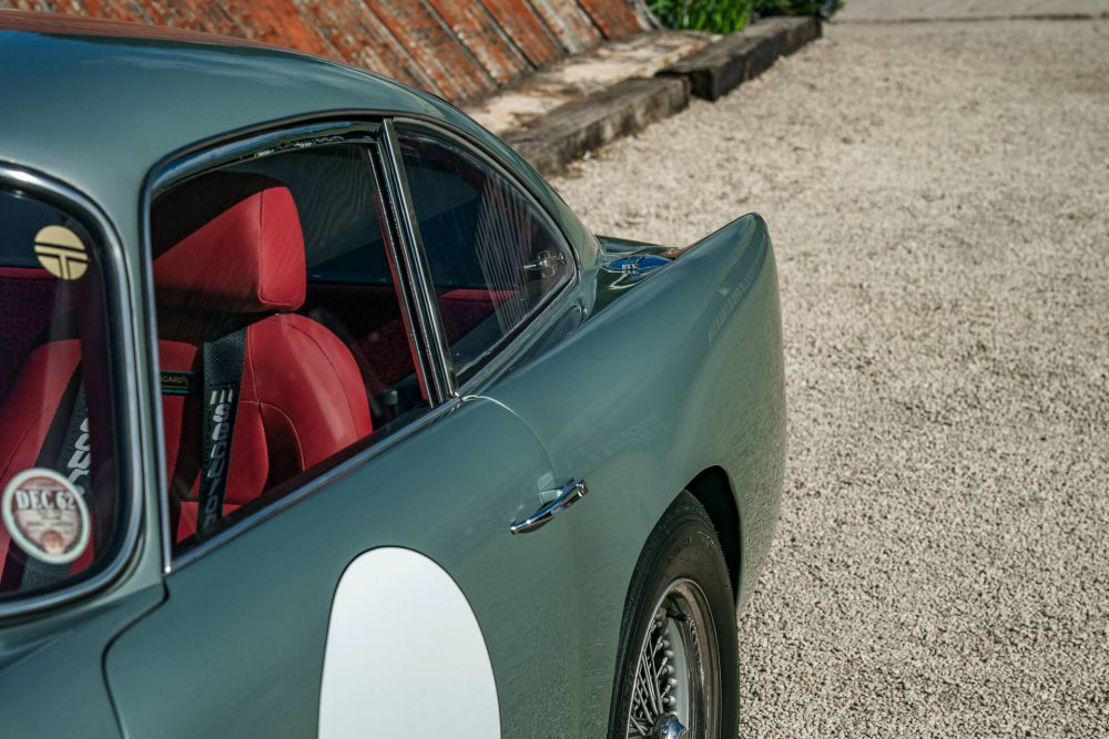 Now presented in Light Grey with red leather interior, the DB4 has been de-bumpered and the mounting holes deleted. Lightweight polycarbonate rear quarter-windows and rear screen have been installed, although the owner decided to retain framed glass windows for the doors, he specified period correct lightweight polycarbonate rear quarter-windows and screen along with 16in chrome wire wheels to be fitted.