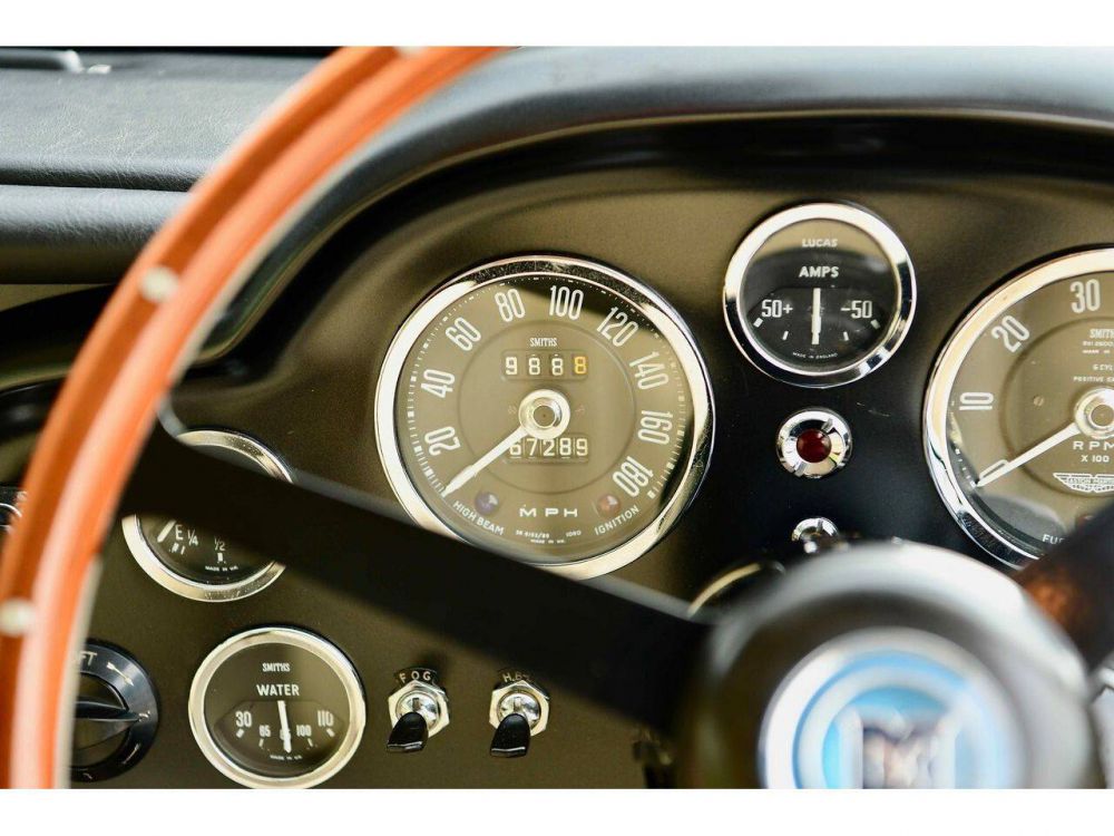 This beautiful Aston Martin DB5 is in outstanding condition and ticks all the right boxes when owning such car. Not the usual James Bond Silver Birch, but a really lovely Bronze with its original Beige leather trim, something different and classy. Always Garage in Hayes, Middlesex, rebuilt the engine in 1970 and the odometer was reading 64,489 miles, which we feel is correct. Following this all the MOT’s and other documents support the mileage. The was purchased by the previous owner at the Bonham’s Newport sale in May 2012 and used for a few thousand miles and two years with a few minor repairs, before the car was taken off the road. Then over the next two years he commissioned the total body and chassis restoration, including a total engine rebuild to 4.2 litre by Bill Goodall. The interior leather was kept as he felt it was so original and good, he just replace all the seat foams and carpet, just to freshen the car up. Totally rewired, brakes suspension refurbished, new Turrion wheels and tyres, the car wants for nothing. The owner has driven the car for 2,000 miles in the last two years, for special occasions only and lives in a controlled heated garage.