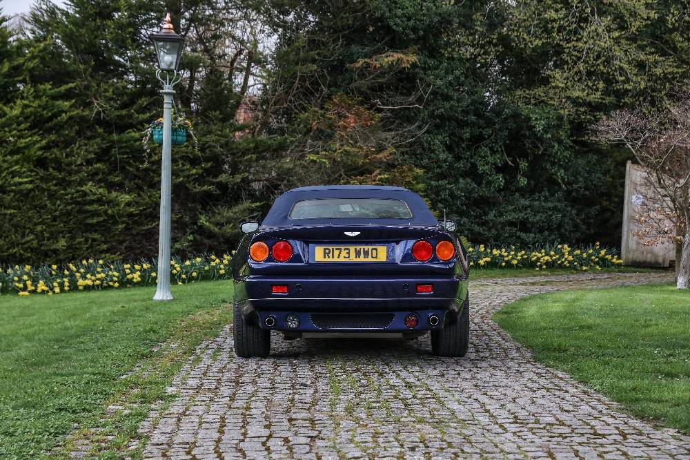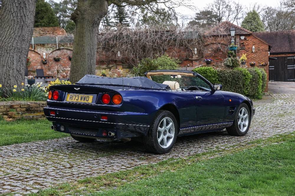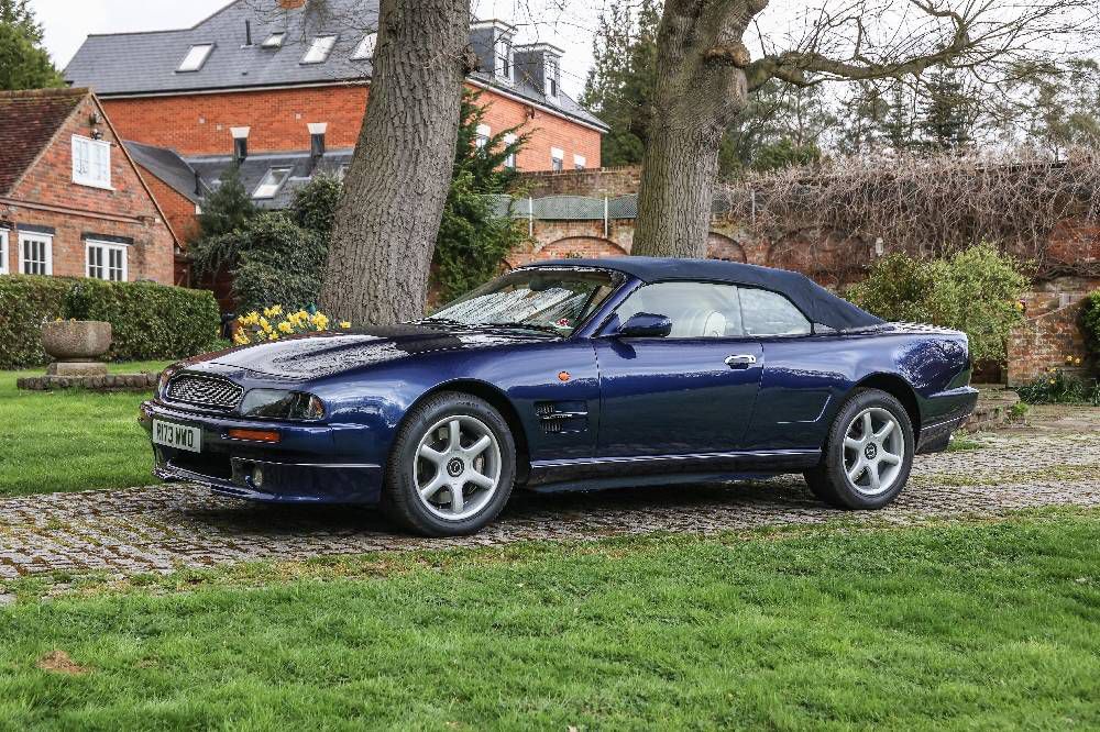 1998 Aston Martin V8 Volante LWB finished in Peacock blue with contrasting Magnolia hide interior piped in blue with best quality dark blue Wilton carpet throughout, together with an unmarked Blue mohair electric soft top. This is indeed a very rare model of Aston Martin and is chassis number 5  of a production run of just 63 cars that were built to long wheel base specification, making them even rarer than a DB4. The additional space for rear seat passengers comes from an extra 200mm of leg room, making it a very comfortable and luxurious model for four adults, even on long joourneys. This particular example comes with a large and detailed service history file with numerous invoices from Trinity Engineering and latterly from John Watson of Chicane.        Very reasonably priced for one in such superb condition at £95,000