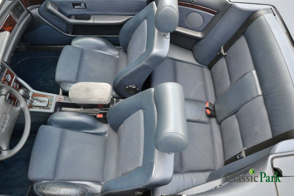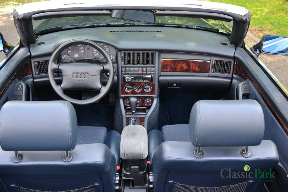 This Audi convertible is a 2.6E Automatic with the magnificent 2598 cc six-cylinder Audi engine. It is an original Dutch delivered Audi of which the purchase invoice comes with the documentation. In the options list at the time, the paint with pearl effect was highlighted, and the beautiful burr walnut inlay. The car is equipped with wonderful, original 17 inch multi-spoke Audi rims with polished edges. The rims are in a very good condition. The car has always been excellently maintained as can be seen from the supplied invoices and booklets.