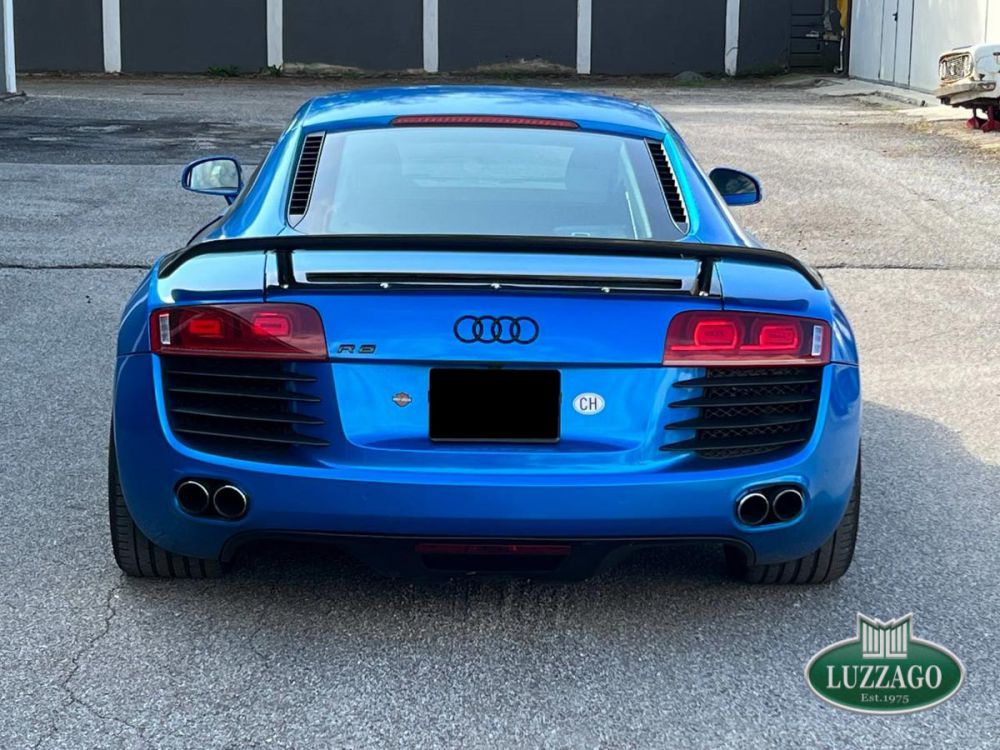 Audi R8 4.2 V8 R-Tronic del 2008. Pochissimi chilometri solamente 71.000. Eseguiti regolari ispezioni TUV ogni due anni in Svizzera. L'automobile offerta ha subito diverse modifiche estetiche su gusto del precedente proprietario, tutte interamente reversibili senza alcun costo economico. L'Audi nasce di colore bianco con interno in pelle nero. Lavori estetici eseguiti:-Montati distanziali su cerchi posteriori-Scocca completamente pellicolata nel colore blu metallizzato-Sostituite le cerniere porte con sistema ad apertura verticola (sono disponibili le cerniere originali) Storia del modello e curiosit L'Audi R8