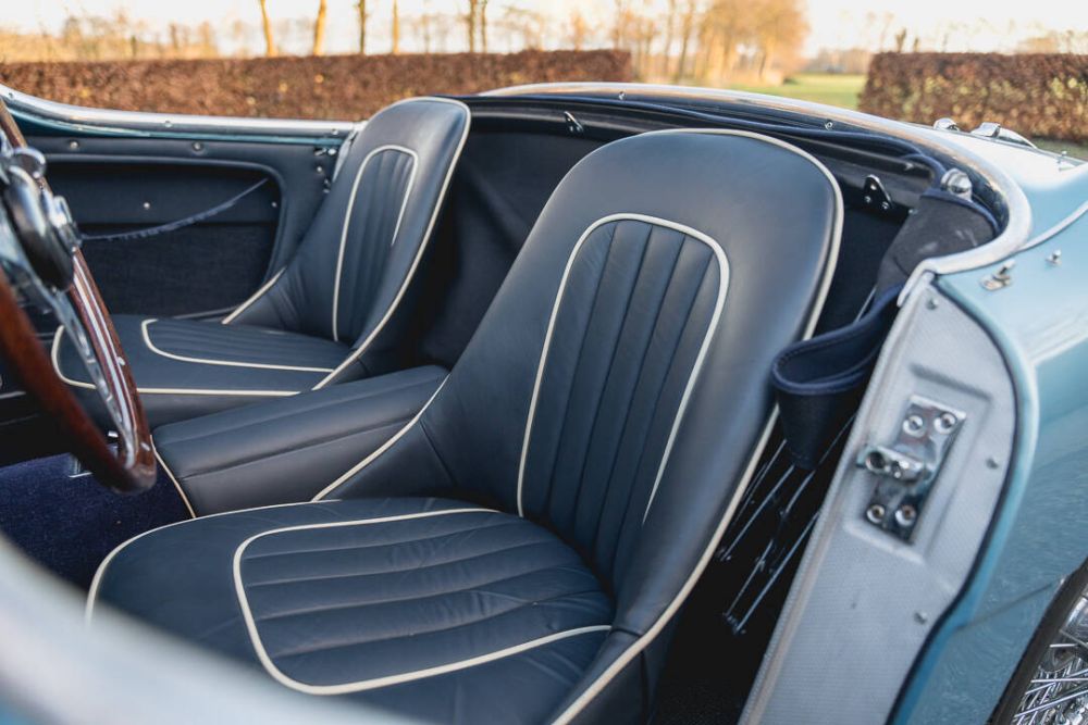 Voor onze collectie zijn we voortdurend op zoek naar speciale Austin-Healey modellen, en de komst van deze prachtige 100/4 'Le Mans specs' is een geweldige aanvulling. Deze zeer mooie en uitgebreid gerestaureerde Austin-Healey werd gebouwd op 23 februari 1955, en was oorspronkelijk gespoten in Carmine Red met een zwart interieur en dak. De fabrieksuitrusting bestond uit een gelamineerde voorruit, een kilometerteller, een verwarming en standaardbanden. Na productie werd de auto direct geëxporteerd naar de Verenigde Staten van Amerika. Zoals bleek, maakten de Amerikaanse roots dit exemplaar zeer geschikt voor restauratie, en dus werd de in België gevestigde specialist, Red Baron Garage, gevraagd om een restauratie uit te voeren waarbij geen kosten werden gespaard. Tijdens de restauratie werd besloten om de Austin-Healey te bouwen volgens de specificaties van Le Mans. De carrosserie werd gespoten in Ice Blue, een zeer mooie en lichtblauwe metallic lak. Het interieur werd opnieuw bekleed met donkerblauw leer, met de juiste crèmekleurige biezen en een bijpassend mohair donkerblauw dak. De prachtige verchroomde spaakwielen en de motorkap met lamellen en een bruine leren band zijn een lust voor het oog. Tijdens de restauratie is de motor volledig gereviseerd en voorzien van veel speciale onderdelen. De cilinderkop is volledig van aluminium, inclusief kleppen volgens racespecificaties, de zuigers zijn anders voor een hogere compressieverhouding, de nokkenas en de krukas zijn van een ander type en dat geldt ook voor veel andere onderdelen. De motor is ook voorzien van 123 ontsteking, een volledig roestvrijstalen uitlaatspruitstuk, elektrische brandstofpomp, nieuwe carterpan, High Performance radiator en een Cold Air Box. Samen met een verbeterd en gloednieuw remsysteem met schijfremmen voor, heeft de ophanging nieuwe schokdempers, stabilisatoren en nieuwe bladveren. Vanuit rijperspectief is deze Austin-Healey echt een klasse apart. De kwaliteit van het lakwerk, de verchroomde spaakwielen en bumpers, het volledig opnieuw beklede interieur en niet alleen de motorruimte, deze Austin-Healey is gerestaureerd naar concoursnormen. Er is ca maar 1200 mijl mee gereden na de restauratie. Er is een groot historisch dossier beschikbaar met veel foto's van de restauratie, facturen en een recent taxatierapport.