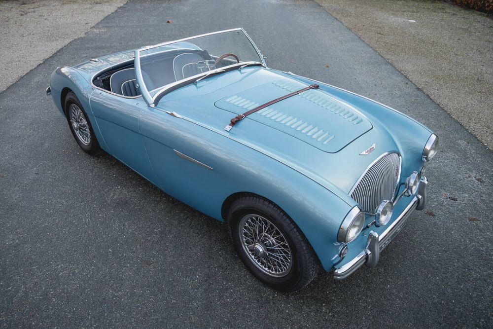 Austin-Healey, a well known name for real British sports car enthusiasts, was founded in 1952. Established from a joint venture between Austin and the Donald Healey Motor Company, the idea was to create affordable and well built sports cars. With money available from Austin, part of the British Motor Corporation, Donald Healey saw his dream came true. The first Austin-Healey launched back in 1952, was the 100. Designed by Gerry Coker and produced by Donald Healey, here was a lightweight sports car featuring beautiful simple lines from which most models where painted two-tone. The 4-cylinder engine found its origins in the Austin A90, and production was quickly moved from Warwick to Longbridge, Birmingham. Its main rivals where cars like the Triumph TR2 and TR3 models and several models from MG. Interesting to know is that ‘100’ stood for a top speed of 100 miles per hour. Quite a speed in the early Fifties! In later years, the Austin-Healey 100 was known as the ‘Big Healey’. The reason for that was to distinguish the 100 from the much smaller Sprite model, which was introduced at the end of the 1950’s. Through several changes during its lifetime, the original 100-4 BN-1 model evolved in the second generation, and in 1956, two special models being the 100M and 100S where introduced. In the same year, a new and 2.6-litre engine was introduced, which was seen before in the Austin Westminster.