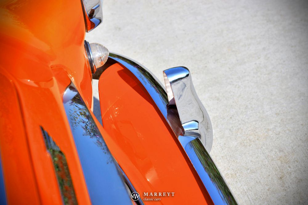 Today the car finds itself in great shape and clothed in a wonderful orange/Ivory paintjob over a black interior. Equipped with chrome wire wheels and still being ‘matching numbers’ on engine. The perfect drivers car for the gentleman or -woman that loves the pure open top driving experience.