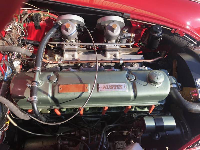 Built in January 1960, and shipped to Canada in February of that year, it was bought new by a newly qualified dental surgeon in Northern Canada as a reward for qualifying, he kept the car for almost 40 years before selling it in 1999 to its second owner, a British expat, who in 2002 started a full ground up restoration. Due to an illness the restoration was delayed several times but was finally completed in late 2006. The work included a full bare metal rotisserie restoration with no area being neglected. Prior to being completely resprayed, the chassis was checked for correctness, sandblasted and restored to as new condition and resprayed in the matching body colour. The engine was stripped and checked over, with the head being rebuilt and fitted with hardened valve seats for modern fuels. The carburettors were rebuilt, the gearbox was also stripped and a number of new parts fitted as well as new mounts. A new wiring loom was fitted and the interior was fully retrimmed in red leather with a ribbed tonneau cover, new hood and side screens. This left-hand drive car was returned to the UK in 2017 by its third and current owner and presents stunningly in red with red and black interior. The car starts on the button and drives superbly with no rattles or squeaks, testament to the quality of the restoration, with recorded running temperature of 180 degrees and oil pressure of 40 psi when hot.