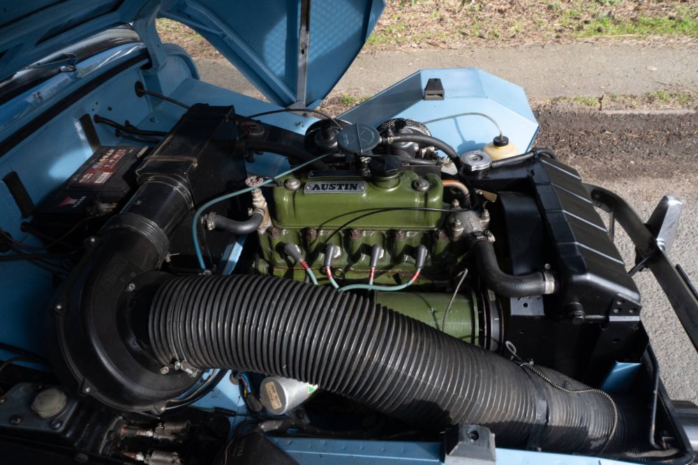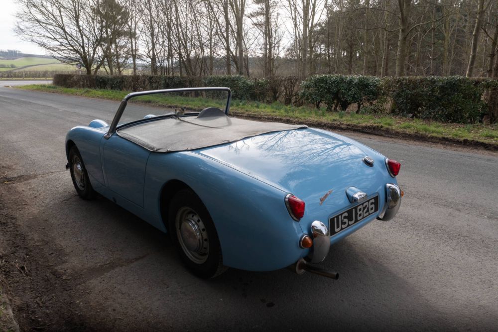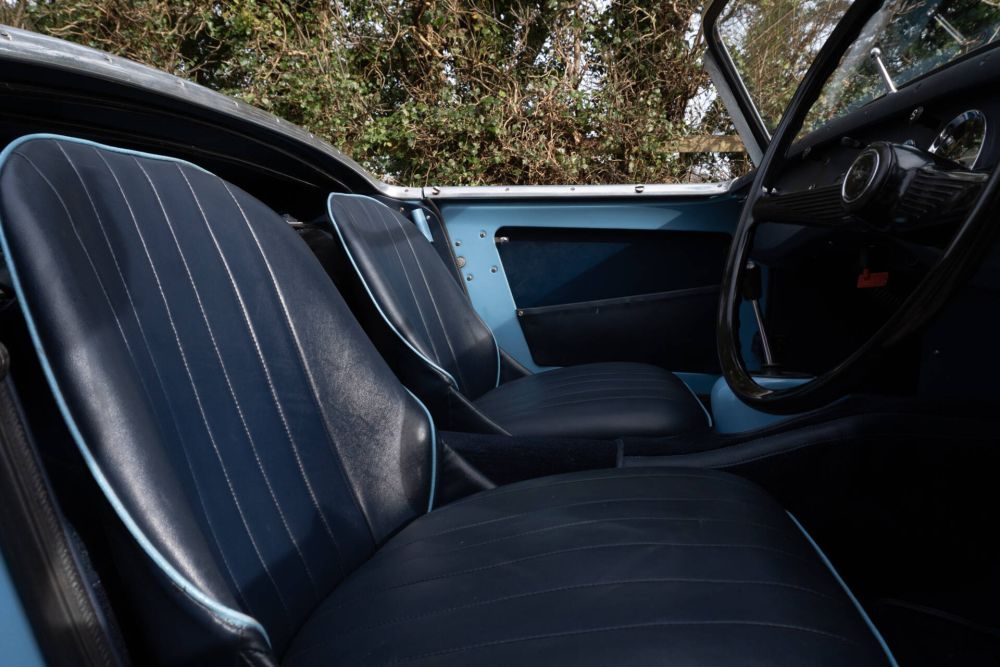 This beautifully restored Austin Healey ‘Frogeye’ Sprite MKI has arrived with us in exceptional condition. Immediately on arrival it was noted the car has an outstanding, straight bodyshell with a lovely deep, Pale Blue paint finish. An underbody inspection reveals a beautifully finished, body colour underside, the engine compartment is impressive and with beautifully finished upholstery and full weather equipment its clear this car has been rebuilt to a very high standard. USJ 826 has also proven to be an incredibly usable car, MOT records confirm the Frogeye has covered 30,000 miles since 1979 and since major restoration work the mileage has been closer to 20,000.