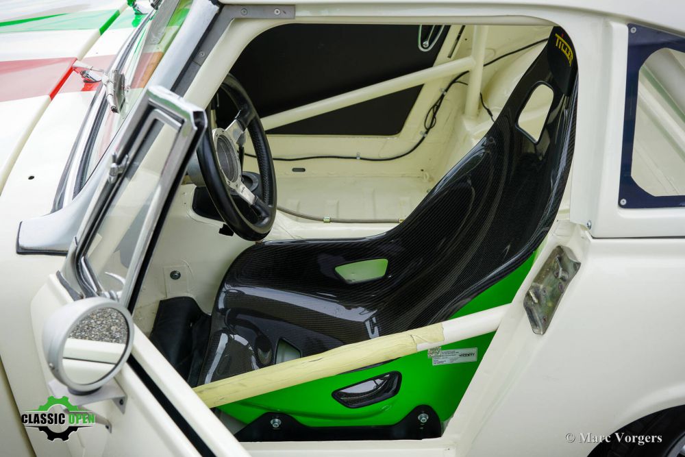 A bespoke full roll cage was installed, and a Tillet race seat fitted.