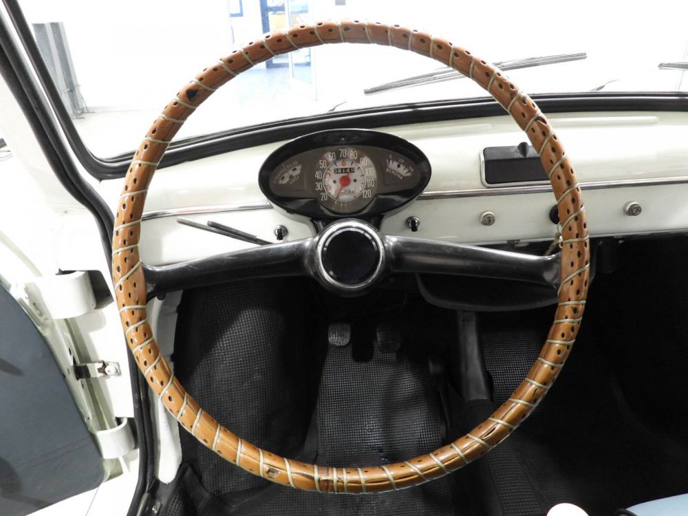 Sedili e pannelli in sky Celeste, Copri volante accessorio after market dell’epoca, Specchio esterno lato guida tondo cromato