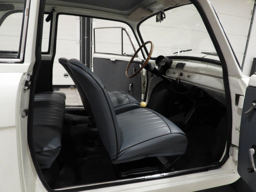 Seats and panels in Sky Blue, Aftermarket accessory steering wheel cover of the period, Round chrome-plated external mirror on the driver's side