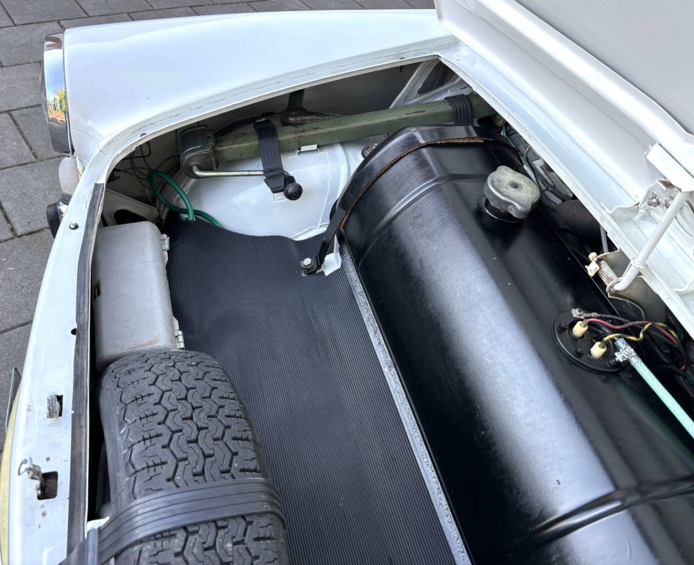 The exterior looks very clean. In the past, the Bianchina has been repainted in the original colour ‘Bianco 233’ and it is excellently done. Over time, some signs of use have obviously appeared. The complete bottom and the mudguards were recently stripped bare and treated with RX. So all weak spots have been carefully addressed in the Netherlands and the car looks very cool. The rims have also been newly painted and fitted with four brand new tyres. The paint has just been professionally polished and has a very nice shine.