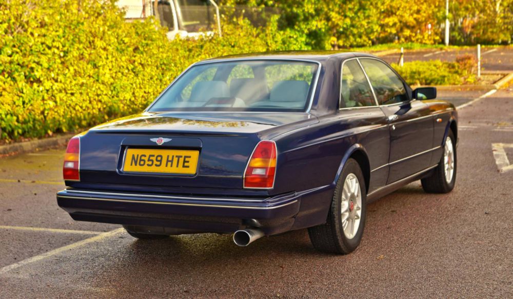 1996 Bentley Continental R Vin Number: SCBZB15C8TCH53102 Registration Number: N659HTE A properly maintained vehicle coming to us with 17 service stamps in the book, The car belongs to a higher up at Bentley Motors in Crewe & is a really fine example having covered 78,000 miles from new. Exterior paint is dark blue metallic in very good conditon. The alloy wheels have just had a full refurbishment so look like new. To the interior is grey leather piped in blue in really really lovely condition with a grey leather headlining. Traditional burr walnut was used for the dashboard. Pale blue deep pile lambswool rugs are found under foot. The car drives as well as it looks, having been properly looked after. Always garaged, the car is really tidy under the bonnet wth an engine bay that is clean & tidy. This is a fine example of the model & very well worth a look.