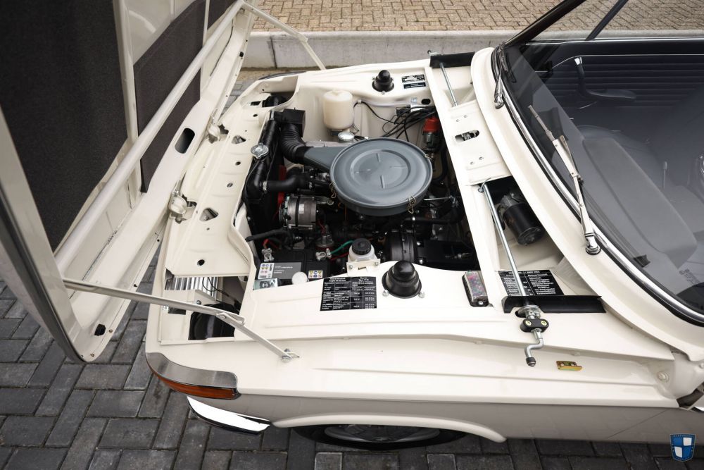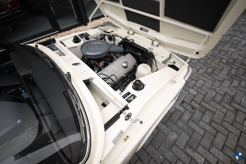 The car was completely restored between 2021 and 2023. A complete and all-out restoration. The body was stripped to bare metal and bodywork was replaced where neccesary. A complete repaint in the factory color was performed. A beautiful finish on the outside, engine-bay, trunk and undercarriage. The car was assembled with lots and lots of new parts and the car makes an as new impression. Re-chromed front and rear bumper. New trim all around the body, new trim on the sills and re-chromed taillight roundels. New, clear headlights, new blinkers, new emblems, new gaskets. All new parts, nothing left forgotten. The body is very straight and the finish is excellent.