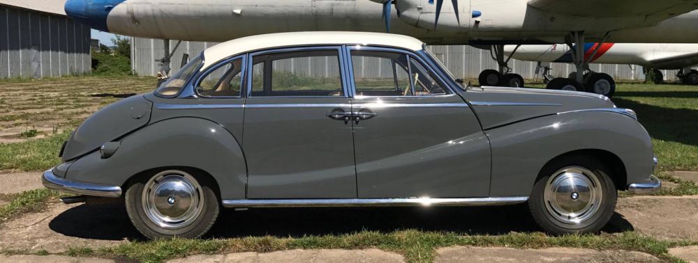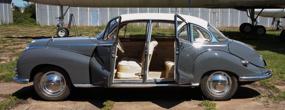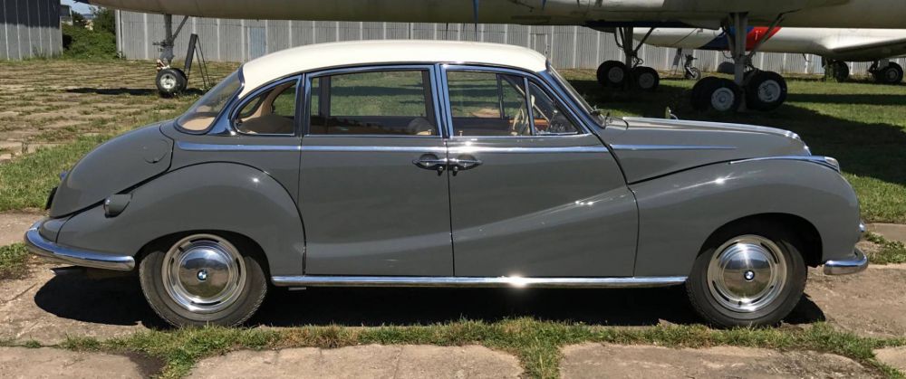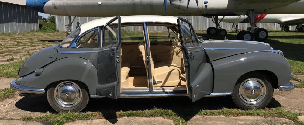 Vintage and Prestige are proud to offer this 1960 BMW 502 2600 For Sale. This beautiful post-war car was subject to a complete nut and bolt restoration 5 years ago and has covered less than 2000 km since then. The owner has a large collection of cars and this particular model currently resides in a small museum in Slovakia. Please call for further details. The 502 was acclaimed as Germany's first post-war V8 powered car, but its high price of DM17,800 led to low sales, only 190 were sold in its first year of production. The 502 was distinguished from the 501 by additional chrome trim and more lavish interior fittings. Fog lights and individual front seats were also now included as standard features. The 502 was mildly restyled in 1955 with a wraparound rear window. As well as the saloon version, BMW offered Baur built two-door cabriolet and coupé versions of the 502 in 1954 and 1955. 501s and 502s were also converted into ambulances and hearses. The 501 and 502 model designations were discontinued in 1958, when the 501 V8 was renamed the BMW 2.6 and the 502 was renamed the 2.6 Luxus. The cars were continued under these model designations until 1961 with only two notable changes: Power steering became an option in 1959, while front disc brakes were added in 1960. Office 01375 379719 Christoff Cowens 07772188037 Jan Kurty 07872932675