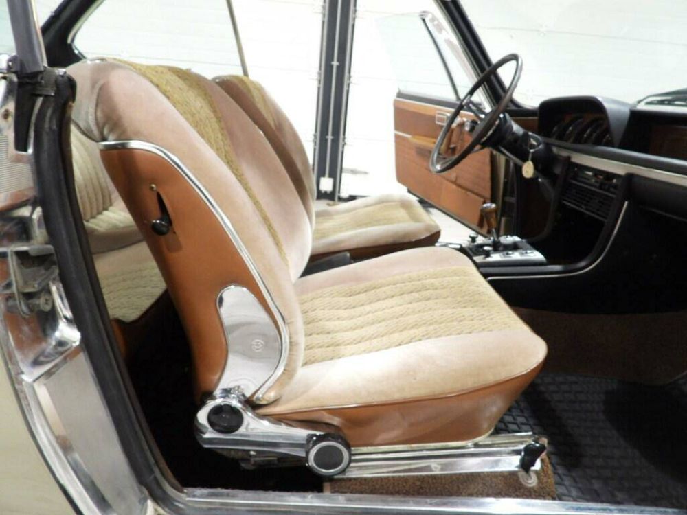 Havana velvet seats and tobacco sky, Tobacco sky panels, Brown bouclet carpeting on the floor, Walnut burl inserts on the dashboard, central tunnel and panels, Wooden gear knob, Three-spoke leather steering wheel, Campagnolo alloy wheels with 215/70 R14 tyres, Chrome-plated driver's side mirror, Complete tool kit
