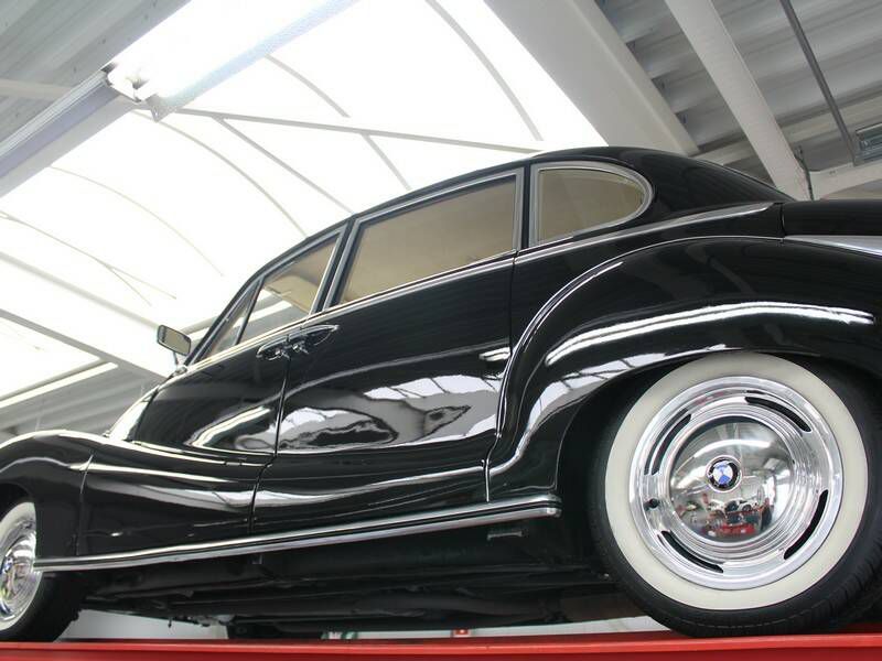 This particular example from 1956 is a beautifully restored car that has undergone a three-year restoration by professionals. What makes this BMW special is the perfect balance between high-quality restoration and the preservation of authentic details, which give the car its original character and charm. The exterior is finished in a deep, glossy black paint that contrasts beautifully with the beige interior trim. The quality of the paint is excellent, with a rich shine that accentuates the car's refined lines. The chrome details, such as trims and emblems, are in very good condition and contribute to the car's chic appearance.