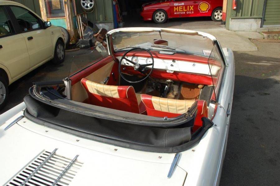 The interior is original in period colours of cream and red. The seats and door cards are in good condition. The original mats are worn, and there will be an area of carpet that simply needs fitting.