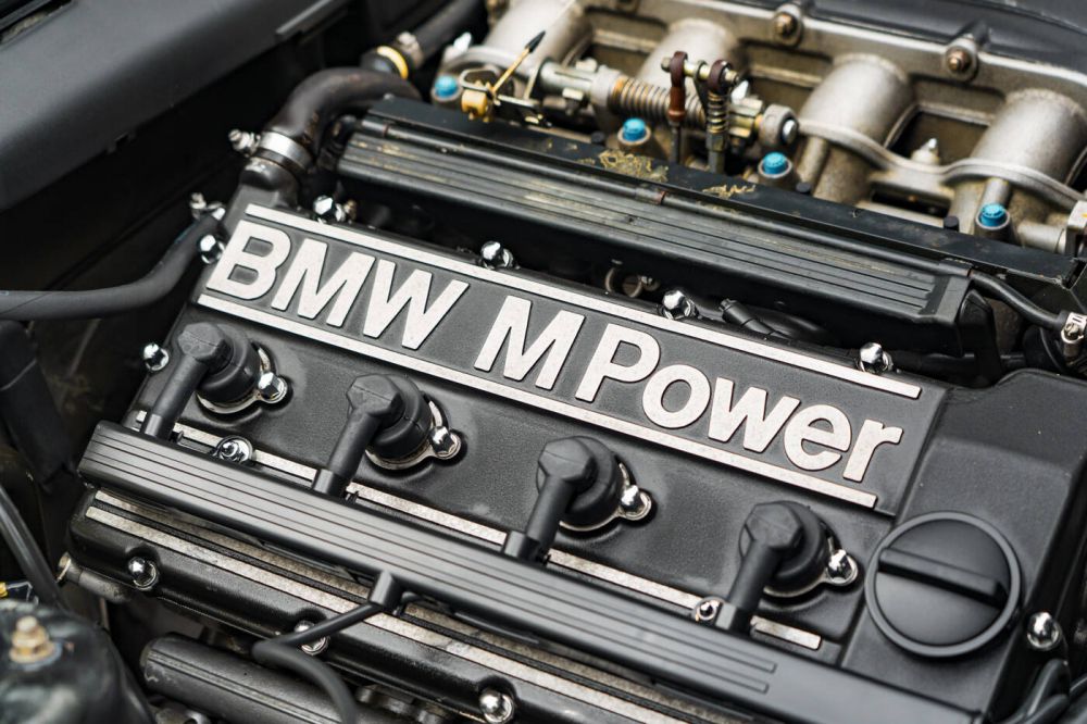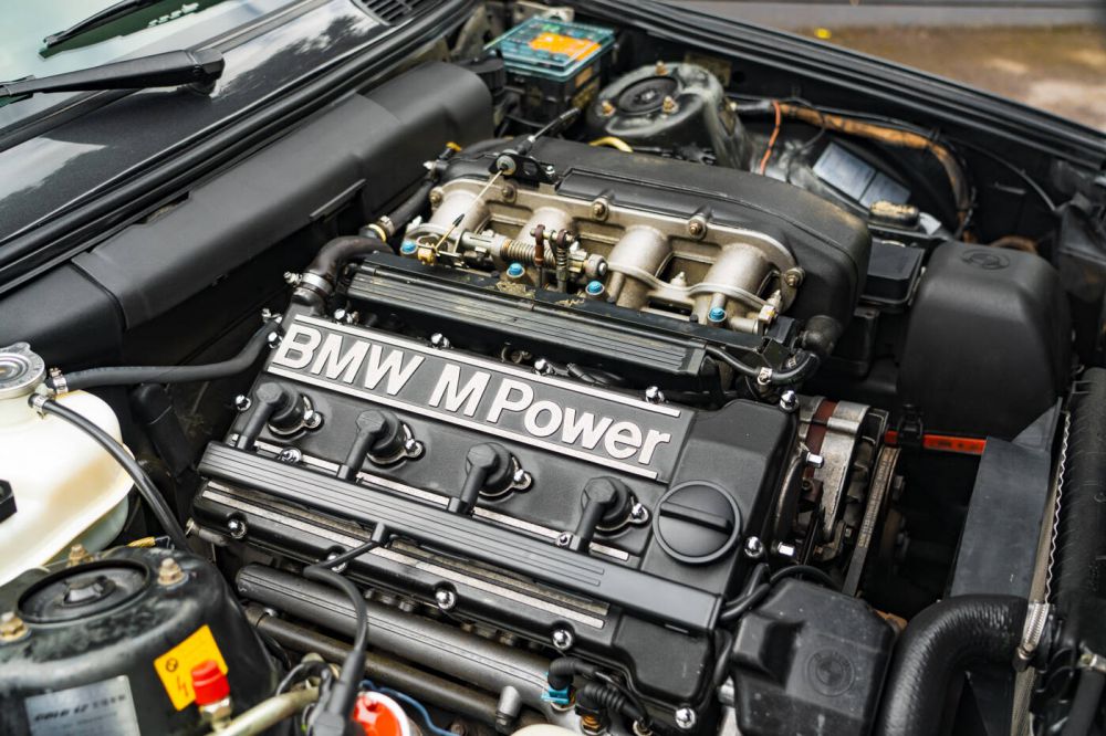 The revised AK05 4-cylinder engine was completely revised by engineeering guru Paul Rosche for the M3. Low weight, high torque and durability remained, but the displacement was enlarged to 2,300 cc and a four valve head was integrated. Its short crank layout enables it to rev to 9000 rpm in race conditions. Maximum power output was 212 hp for the AK05 version.  The BMW Racing braking system with ABS and ventilated discs, ensured that it stopped as well as it went, and the suspension and damping were designed with racing in mind. The Getrag 265 5-speed dog leg gearbox was straight from the track. Not much more than the bonnet remained from the regular E30 Threes.