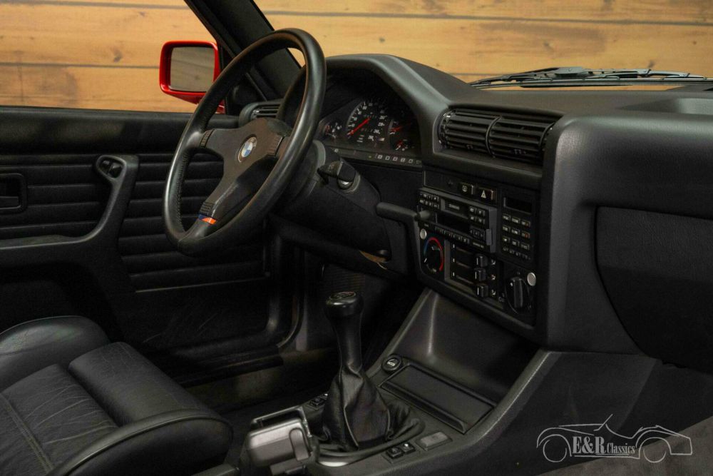 This BMW E30 M3 that we offer for sale here is truly a sight to behold. It is finished in the beautiful factory colour Zinnoberrot. The red paintwork looks great on the M3 and completely matches its sporty looks. The interior is equipped with black leather upholstery and is in very good, original condition. The BMW has electrically operated windows and mirrors and also a sliding roof. In short, a very beautiful, original BMW E30 M3 from the first owner that is completely ready to hit the road.