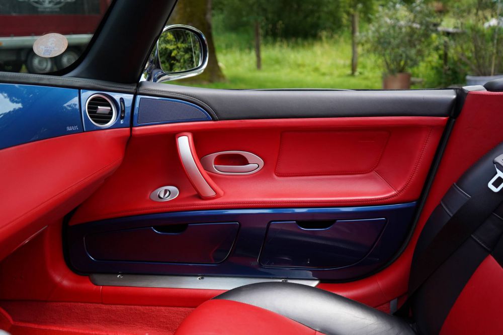 Dieser BMW Z8 ist einer von lediglich 8, die in der Farbkombination Topas Blau mit Interior in Sport Rot/Schwarz ausgeliefert wurden.