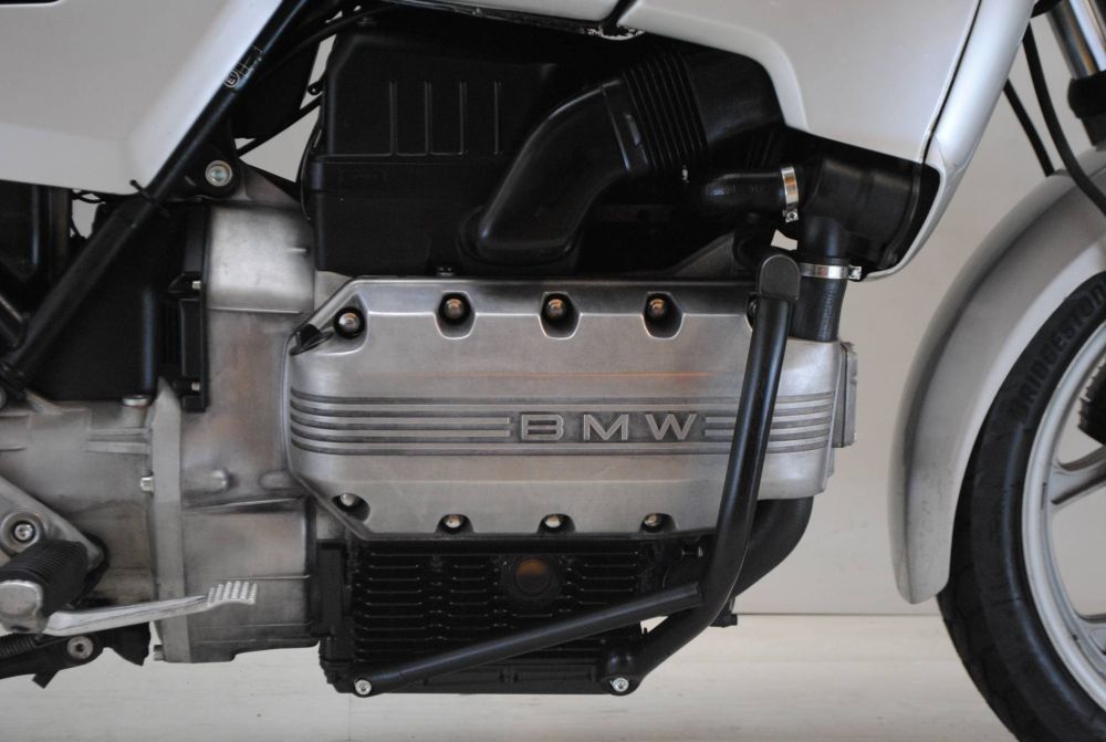 De BMW K100 werd geproduceerd van 1983 tot 1992 en was BMW,s eerste model dat werd aangedreven door een moderne viercilindermotor.Daarnaast beschikte de K100 ook over verschillende andere innovatieve kenmerken,zoals een uniek cardanaandrijfsysteem en een geavanceerde voorwielophanging.het model werd goed ontvangen door zowel critici als enthousiastelingen, en het succes maakte de weg vrij voor toekomstige BMW motorfiets ontwerpen. Het hier aangeboden modelkomt uit de eerste geproduceerde seri en is in zzer goed staat.