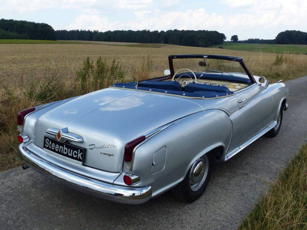 The car industry in Bremen/Germany began as early as 1900. There were the Hansa-Werke in Varel since 1905, the “Norddeutsche Automobil- und Motoren Aktiengesellschaft” (NAMAG) with is Lloyd brand, and in 1928 a then 38-year old Carl F.W. Borgward started the “Goliath-Werke”. In the following years, Borgward dominated all car activities in the Bremen region and starting in 1938 he built cars in a super modern factory in Bremen-Sebaldsbrück. The “Isabella” became the “patriarch’s” success model. The famous Isabella Coupé, meant as a unique model for Ms Borgward, crowned the series. The body shop Deutsch in Cologne was a specialist in the transformation of elegant cars into convertible and apparently 9 such Isabella Cabriolets were built. Our Isabella Cabriolet was built in 2014 following the design blue print by Deutsch and it’s high end work was done by Bosman Classics in the Netherlands. Now you can buy this dream convertible from the famous Borgward Isabella series!