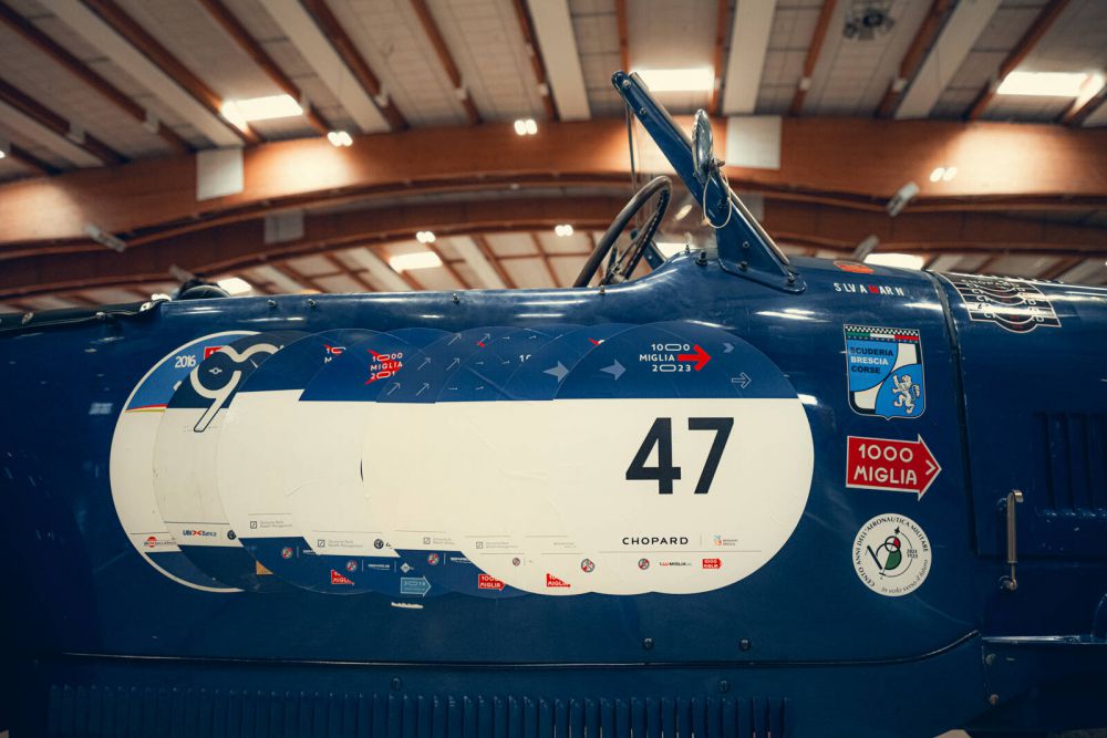 Bugatti, one of the most evocative names in the history of motor sport Entrant in eight editions of the Mille Miglia and 4 times winner of Coppa delle Dame in 2020-2021-2022-2023, all editions finished without any mechanical problem Very original, well-documented example It is estimated that fewer then 200 examples survive today The car has been extensively prepared for the Mille Miglia to achieve mechanical perfection No costs are spared for the preparation of this car Owned by Prince Gustave de Croÿ in Brussels in 1973, wonderful pictures in his castle are in the file of the car A car with a high coefficient for the current Mille Miglia (1.75 on a maximum of 1.80)