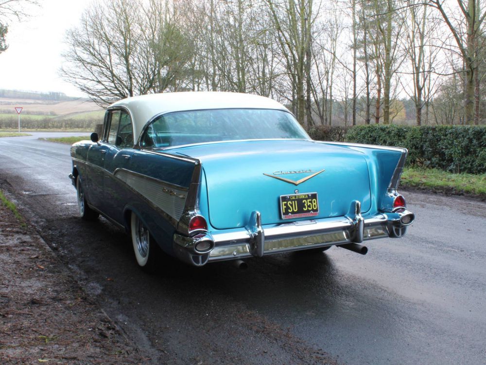 American Classic car enthusiasts are familiar with term 'Tri Five Chevy' This was the nickname representing a specific series of classic Chevrolet vehicles, namely the iconic 1955, 1956 and 1957 products including the well-known One-Fifty, Two-Ten, Bel Air, and Nomad models. In 1955 alone 1.8 million 'Tri-five' Chevys were built and by the end of 1957 over 5 million had been produced. Of them all, the 1957 Bel Air is arguably the most desirable model with its distinctive front end and rear tail fins and the car we present here is an astonishing example having been subject of an exceptional no expense spared restoration. It came to England and was first registered here in November 1978 and its last owner acquired the car in 2015, as a low mileage 'barn find'. We have photos of the car on a 'T' plate 45 years ago, many invoices and a beautiful book of photographs detailing its transformation to the present show-stopping condition.