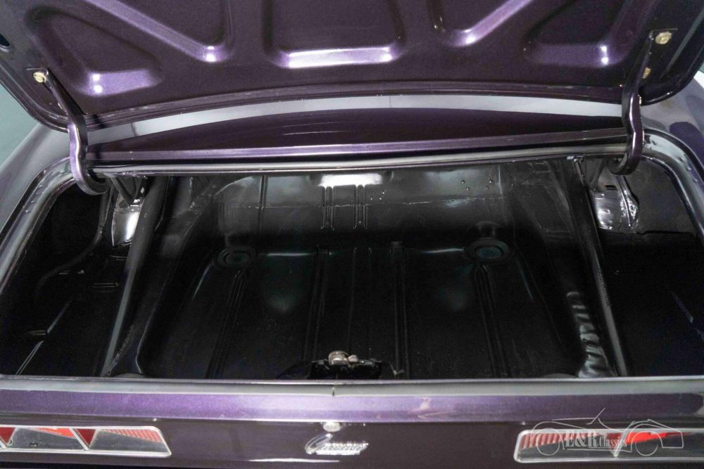 Zoals u op de foto’s kunt zien is dit allesbehalve een standaard Camaro. Het betreft hier het meest geliefde model uit 1969 met de agressieve en sportieve styling. Hij is uitgevoerd in een prachtig donkerpaars lakwerk dat helemaal past bij de looks van deze klassieker. Zijn brede banden en lichtmetalen velgen maken het totaalplaatje helemaal af. Het interieur verkeert in een zeer nette, originele staat en is uitgerust met zwarte, kunstlederen bekleding.