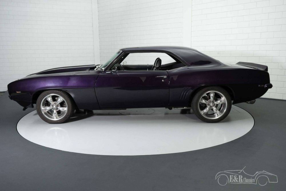 As you can see in the photos, this is anything but a standard Camaro. This is the most popular model from 1969 with the aggressive and sporty styling. It is finished in a beautiful dark purple paint that completely matches the looks of this classic. Its wide tires and alloy wheels complete the overall picture. The interior is in a very neat, original condition and is equipped with black, artificial leather upholstery.