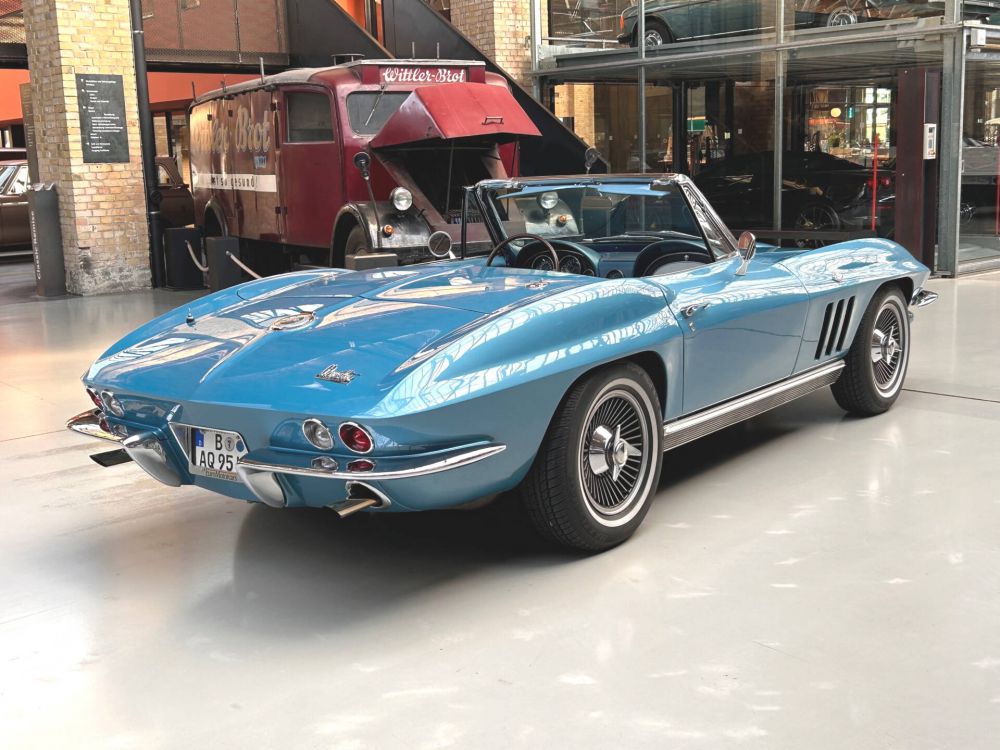 Die Corvette „Stingray“ war in den 60er Jahren der einzige echte US-amerikanische Sportwagen. Er besaß neben einem bärenstarken, hochverdichteten V8 Zylinder-Motor auch das damals moderne Fahrwerk mit Einzelradaufhängung vorn und hinten sowie 4 Scheibenbremsen, die gute Straßenlage wurde unterstützt durch die ideale Gewichtsverteilung, da der Motor weit hinter der Vorderachse saß („Front-Mittelmotor“). Die „C2-Stingray“ hatte mit nur 4 Jahren die kürzeste Produktionszeit aller Corvetten, die beiden letzten Jahrgänge (1966/67), waren die ausgereiftesten und damit heute gesuchtesten dieser Serie!