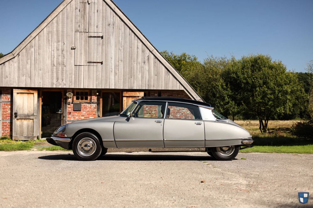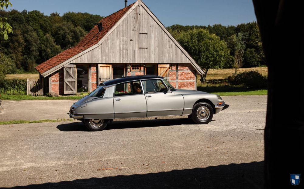 This is DS is from the final year of production 1975 and sold new in the Netherlands. Registered on the 15th of July 1975 on numberplate 24-EN-25 which it still wears. The car has been out of road useage for a longer time and was discovered in a barn. A Citroen Specialist, Auto Renaissance from Amsterdam discovered the car and bought it for his collection. Between 2021 and 2022 it was restored in order for a customer. It's been restored beautiful, has driven a couple of hundred test kilometers and is now available at Oldenzaal Classics. The car was extensively restored and brought back to life. Restored by marque specialists to a very high level. The car is a 1975 DS23ie ('ie' for 'Injection Electronique' = D-Jetronic electronic fuel injection) Pallas painted in beautiful AC095 Gris Nacré - A late and beautiful silver-grey. In 1972 the DX5 engine came to market, the 2,3 liter making 141 horsepower through D-Jetronic fuel injection. Mated to a manual 5-Speed gearbox perhaps the best travel companion. Its a Pallas model ofcourse: The most luxury variant of them all. With beautiful leather seats, doorpanels covered in leather, nice velours carpets. Many stainless steel parts on the sills, doors and jambs. Different trim and lights make it very classy and chic. A rare and interesting extra are the Jaeger instruments: 2 small panels with 2 instruments each. Oil-pressure, oil temperature, voltage and amperage. Another great extra is the big sliding roof. An option that was available at the time, in this case modernized. A new, electric opening roof. No wind-noise when driving closed, and a near-Convertible feeling when driving open. A great option to have and use.