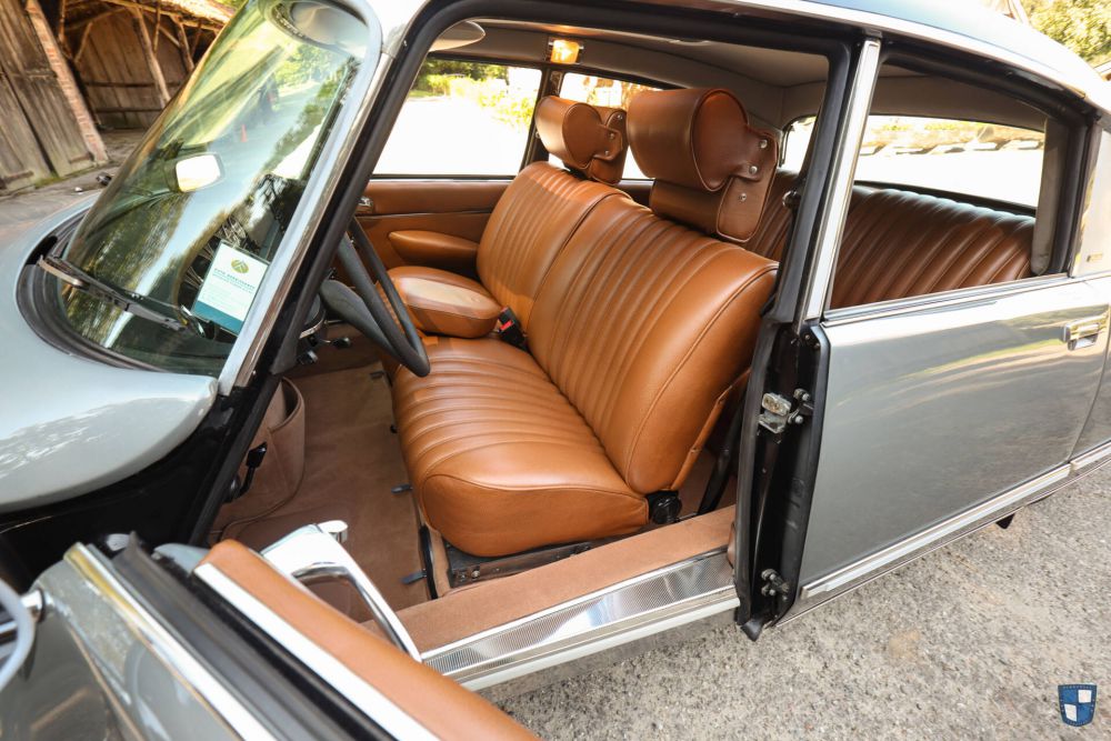 The car has been restored completely in 2021-22 by specialists here in the Netherlands. The bodywork has been performed by DS-Bodywork specialists. The result: A very straight body, good panelgaps and a really proper looking Pallas. The chassis was repainted in satin black, for the correct finish. The body in Gris Nacré and the roof in AC200 Black. The car was assembled beautiful and with lots of brand new parts. The bumpers have been polished to a mirror finish. The same goes for the stainless-steel trim around the roof lining and sides. It has new strips on the doors and the Pallas strips were polished to as-new condition. The headlights have been repainted and fitted with new trim. The wheels have been repainted and fitted with new Michelin Classic tires and polished stainless Pallas hubcaps. It has new mirrors, brand new taillights and all new weatherstrips/gaskets. This car makes a like new impression! Beautiful paint a very straight body and correctly put together with all new parts and trim.