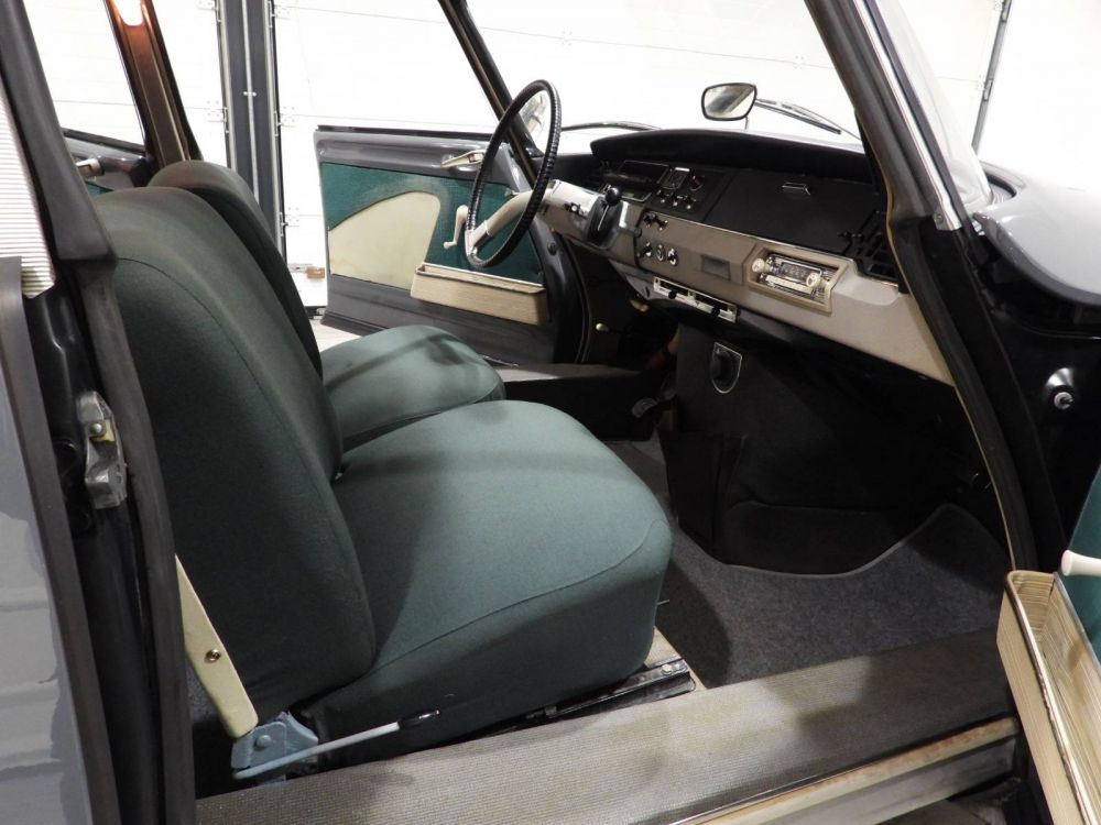Seats and panels in green fabric, original AM/FM radio of the time with roof antenna, chromed external mirror on the driver's side, round yellow Marchal depth lights, steering wheel gearshift, power steering, green oil in the hydro-suspension circuit