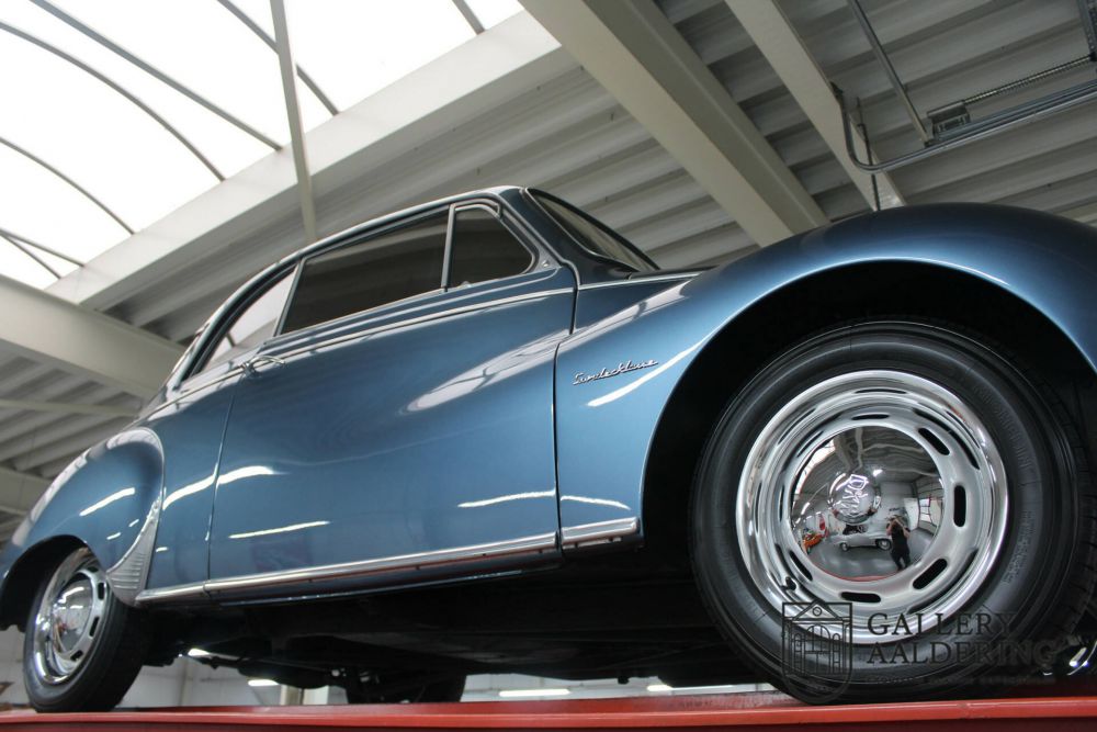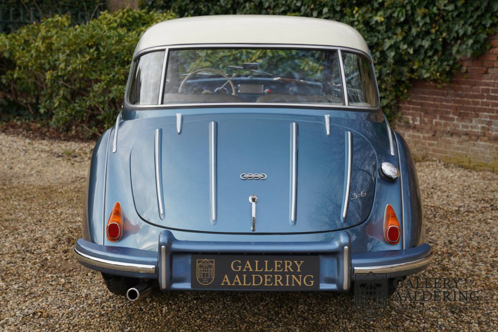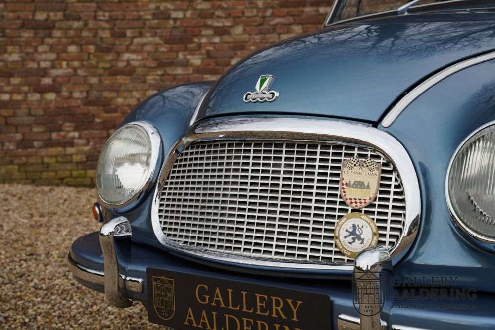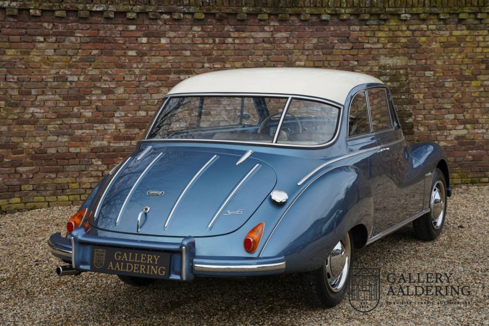 A very nice car, the DKW F93. This Auto Union model was in production between 1955 and 1959, succeeding the F91. In 1953, the brand launched their three-cylinder two-stroke engine, and in 1955, during the Frankfurt Motor Show, this engine was named 'der Grosse DKW 3=6'. The F93 benefited from a more powerful engine and had, among other things, a body that was ten centimeters wider compared to the F91.