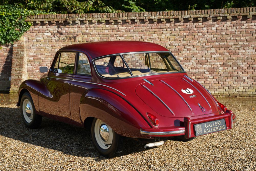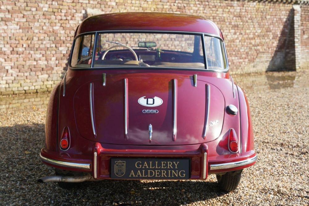 This 1956 Auto Union DKW F93 is a rare and beautifully preserved example—a true time capsule that has entirely retained its origin and authenticity. Having covered only 34,000 original kilometers, it has always been owned by a dedicated enthusiast and expert in classic cars. The fact that this car is still in its original paint, with every aspect—from the rubber components to the chrome work—being authentic, makes this DKW a unique find for the true purist.