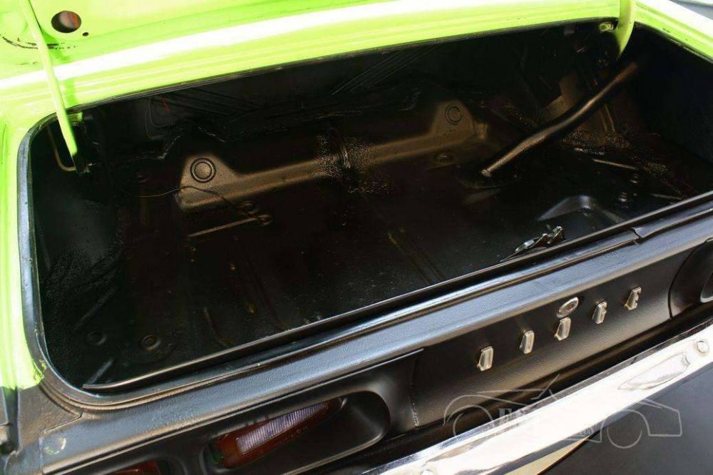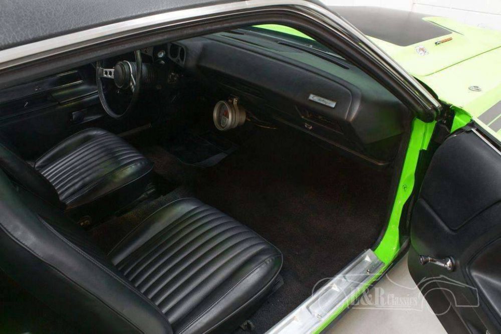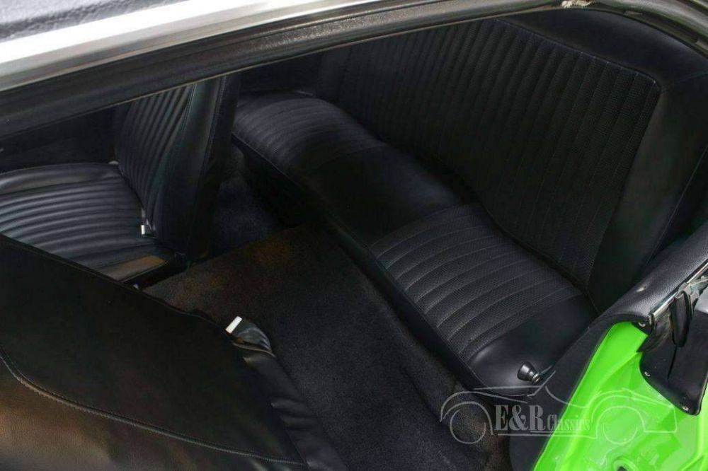 It has a bright green paint with matching RT decals. There are also a number of details that complete the Challenger's overall picture, such as the rear spoiler, air scoops in the hood, wide tires and a black vinyl roof. The interior is in a very neat condition and is equipped with black, comfortable seats.