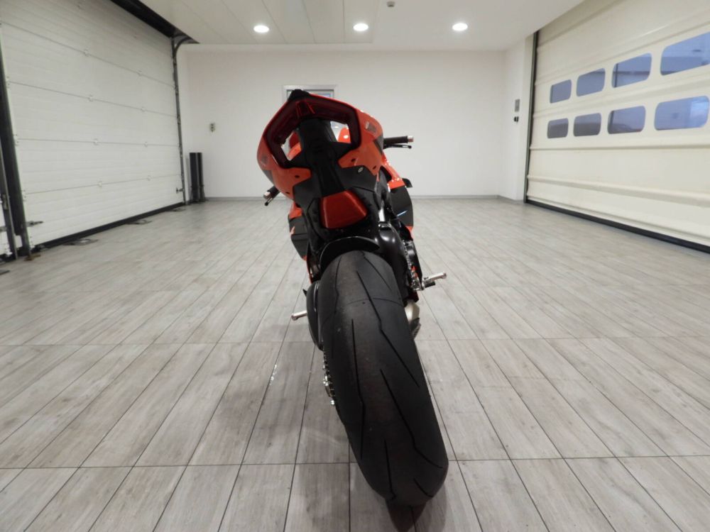 Steering head in billet aluminum with name and progressive number of the bike, Fuel tank in brushed aluminum (Bautista #19 racing livery only), Tank autographed in original by Alvaro Bautista (#19), Racing Plexiglas, Akrapovič approved silencer, Carbon fiber heat shield for rear exhaust manifolds, STM-EVO SBK 9-disc dry clutch, Rizoma adjustable rider footpegs in billet aluminum with carbon fiber heel guards, Brembo Stylema R calipers Brembo MCS pump with remote adjuster, Brake and clutch levers machined, Carbon fiber front and rear mudguard, Carbon fiber front brake cooling ducts, Carbon fiber and titanium swingarm cover, Carbon fiber alternator cover