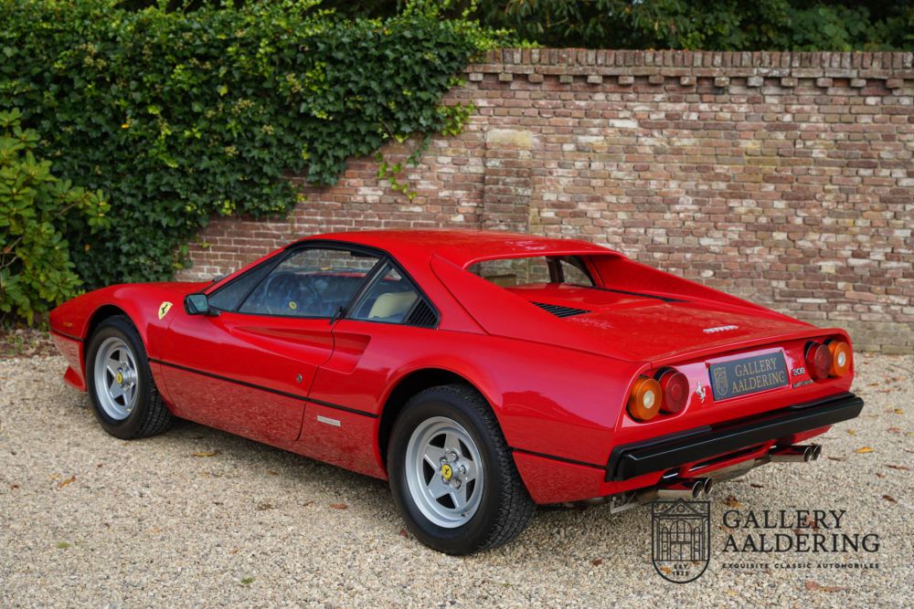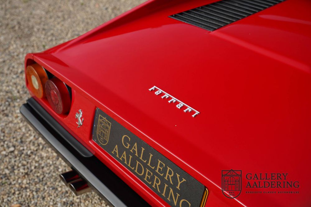 The 308 GTB, with 'B' standing for Berlinetta, is finished in red, and that remains the favorite colour for this model. However much we can appreciate other colors, red suits the 308 like a glove. The red paint is in excellent condition, with a vibrant luster, and this Italian beauty shows no signs of damage or imperfections. Therefore, the car presents itself with a clean and well-maintained body. The panel gaps are precise, the doors close tightly, and the front and rear hatches easily lock into place.