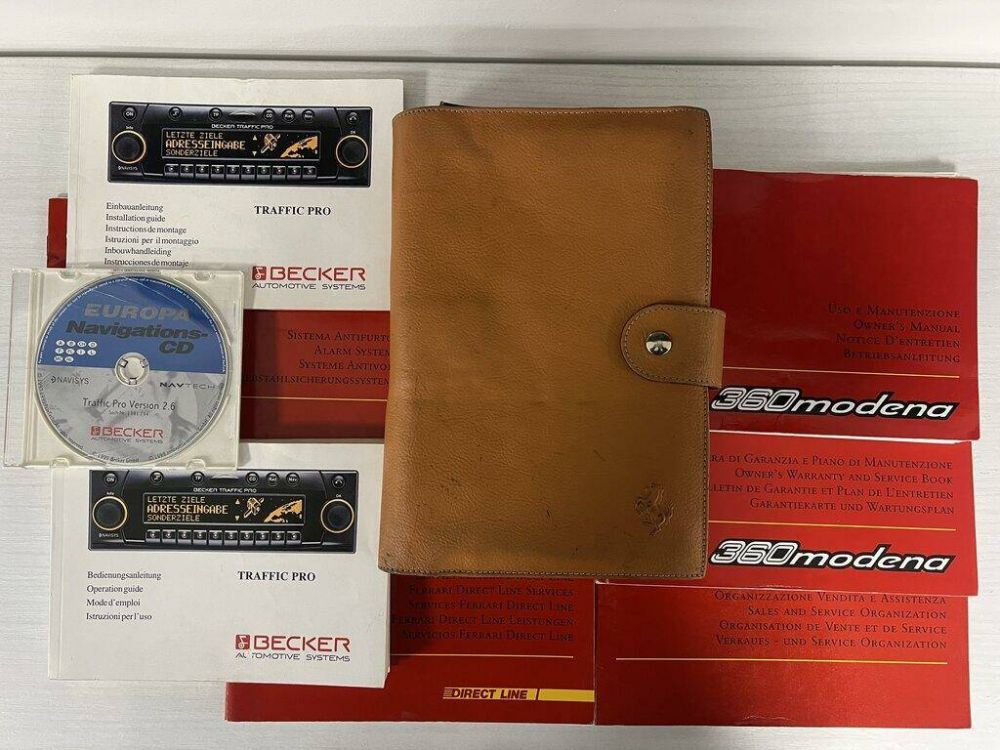 DISPONIBILE CARPETTA FERRARI IN PELLE MARRONE PERFETTAMENTE CONSERVATA E COMPLETA DI: LIBRETTO SERVIZI FERRARI DIRECT LINE, SISTEMA ANTIFURTO, ORGANIZZAZIONE VENDITA E ASSISTENZA CON CONCESSIONARIE FERRARI DELL’EPOCA, LIBRETTO USO E MANUTENZIONE, MANUALE D’USO AUTORADIO BECKER TRAFFIC PRO E TESSERA DI GARANZIA E PIANO DI MANUTENZIONE CON TAGLIANDI TIMBRATI ESEGUITI IN SERVICE FERRARI (TAGLIANDI)